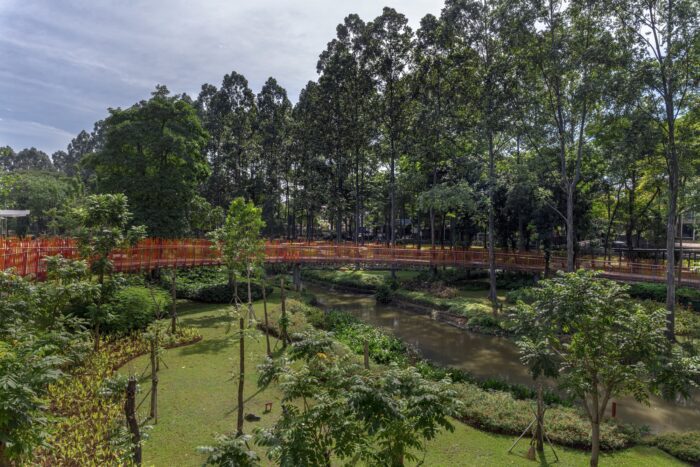 Tebet Eco Park, In just 15 months, an aging public park with a degraded environment, disconnect accessibility, flooding issue, and social problems was transformed into a vibrant park embraced by the local community. Tebet Eco Park is a 7.3-hectare public park revitalization project located in Jakarta, Indonesia with a focuses on an active regeneration of the site’s ecology with tree conservation and enhancing the blue-green infrastructure. The ecological landscape design approach reduces the risk of flooding with river re-naturalization. The result of this new urban regeneration cultivates an inclusive environment that facilitates access to a wide offering of recreational activities in a natural setting.
