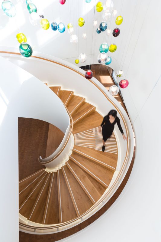 The design team initiated and curated a comprehensive, customized art program to ensure the integration of art, interior design and client vision from the earliest stages. Founded on a nature-based theme – ‘Materials of Meaning’, the artworks, all by Canadian artists, express at different levels of abstraction the role of copper, wood and textiles as means to transfer knowledge, celebrate history and connect people.