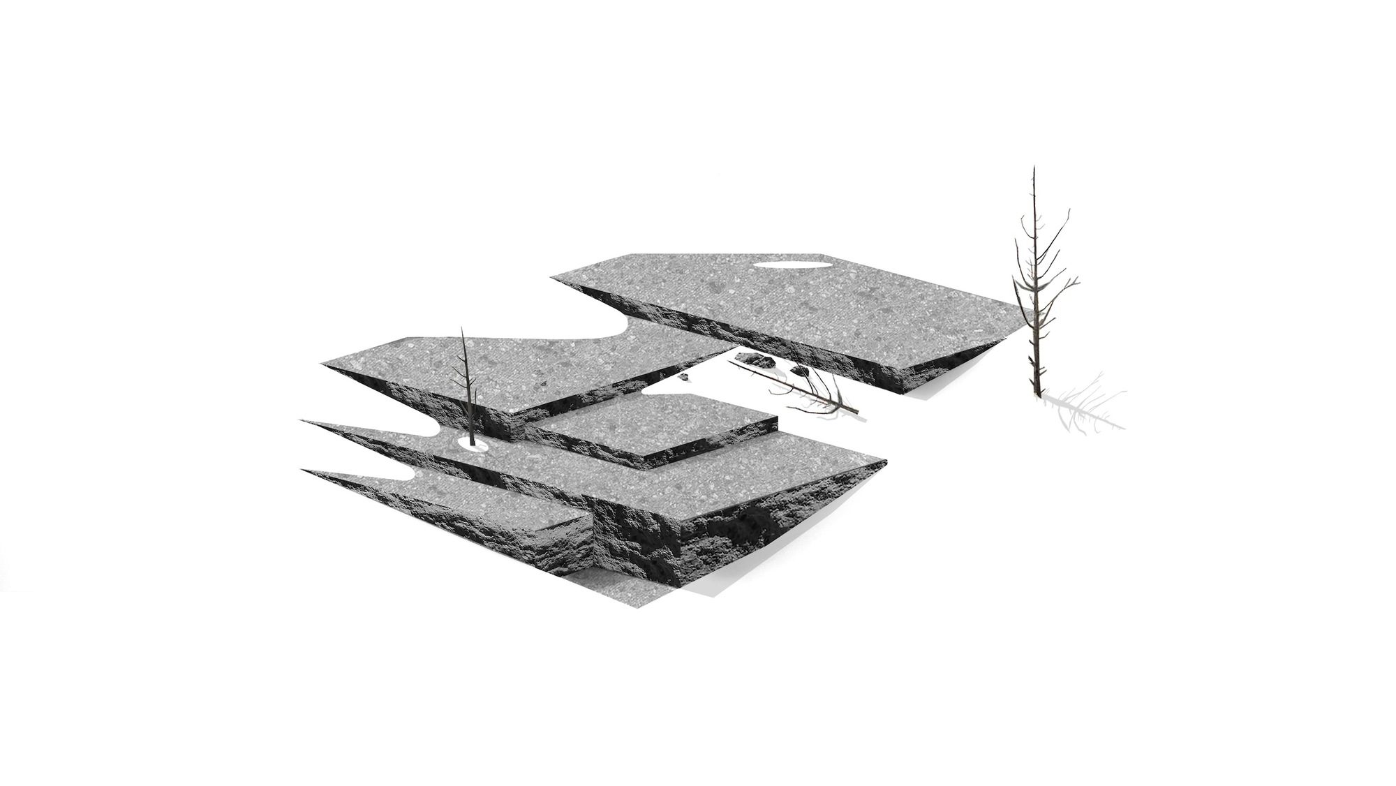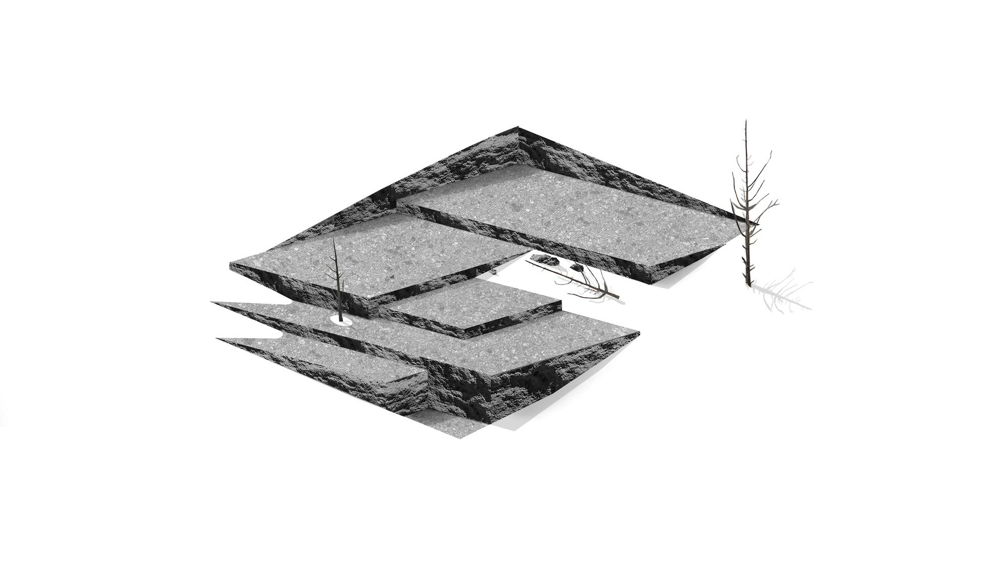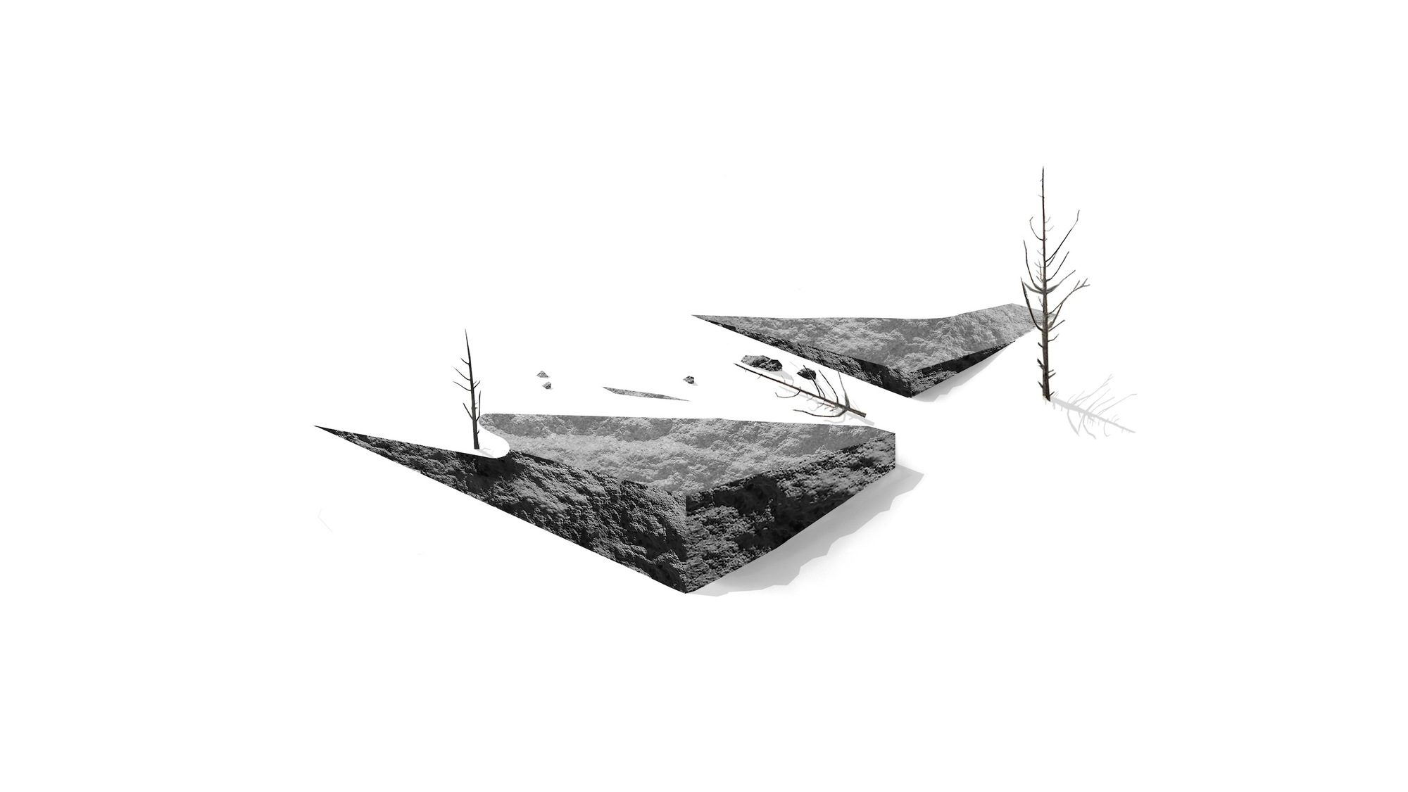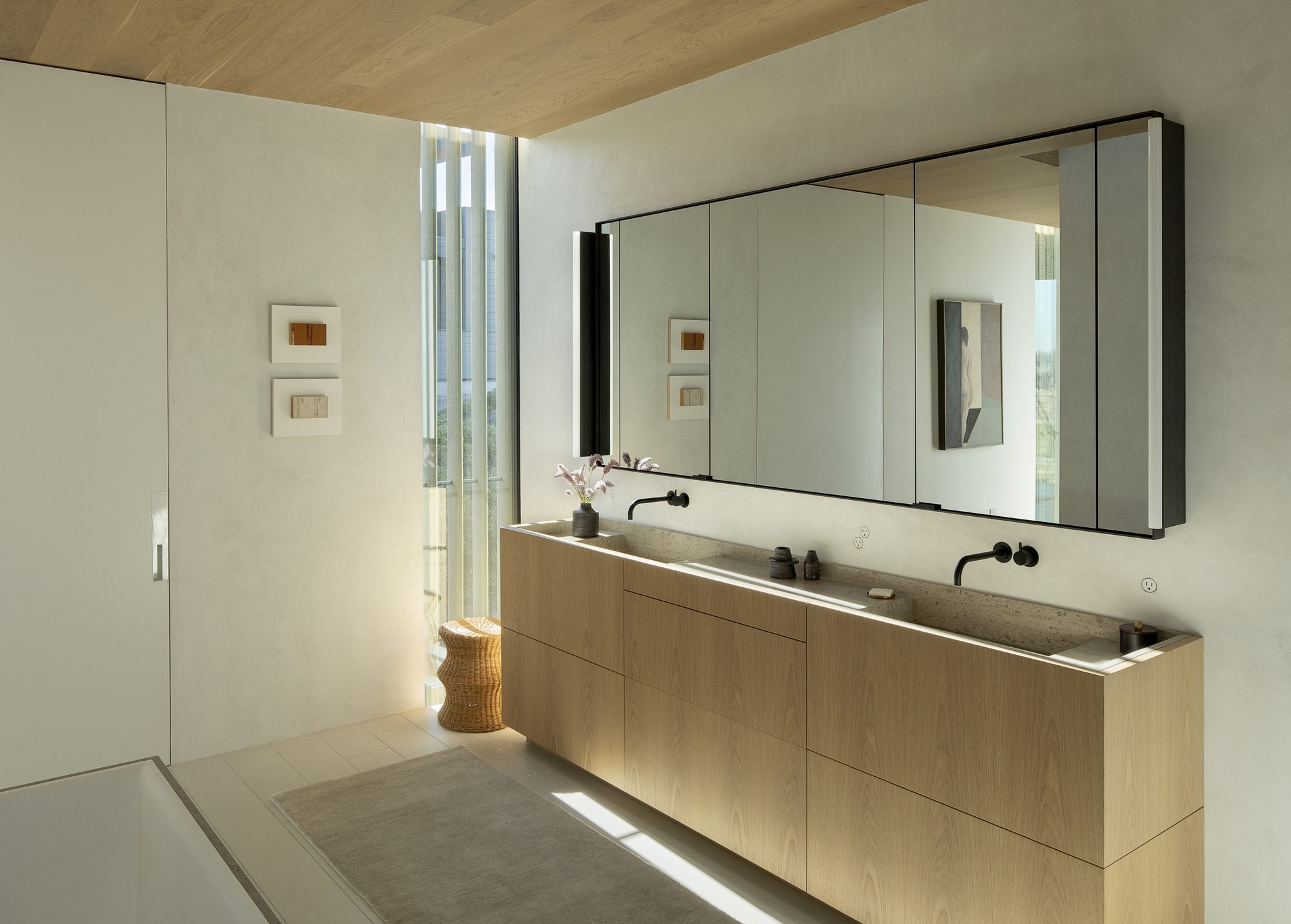Inspired by weathering tree snags, the exterior of the rectangular volumes is clad in coarse wood slats, maintaining a consistent texture over windows and walls. The monolithic masses—faceted, carved, and chamfered—reinforce their connection to the nearby basalt and obsidian, resembling their eroding yet enduring forms. The design offers varying degrees of shelter from the intense desert sun and wind, allowing the high desert climate to permeate the house at all times of the year.