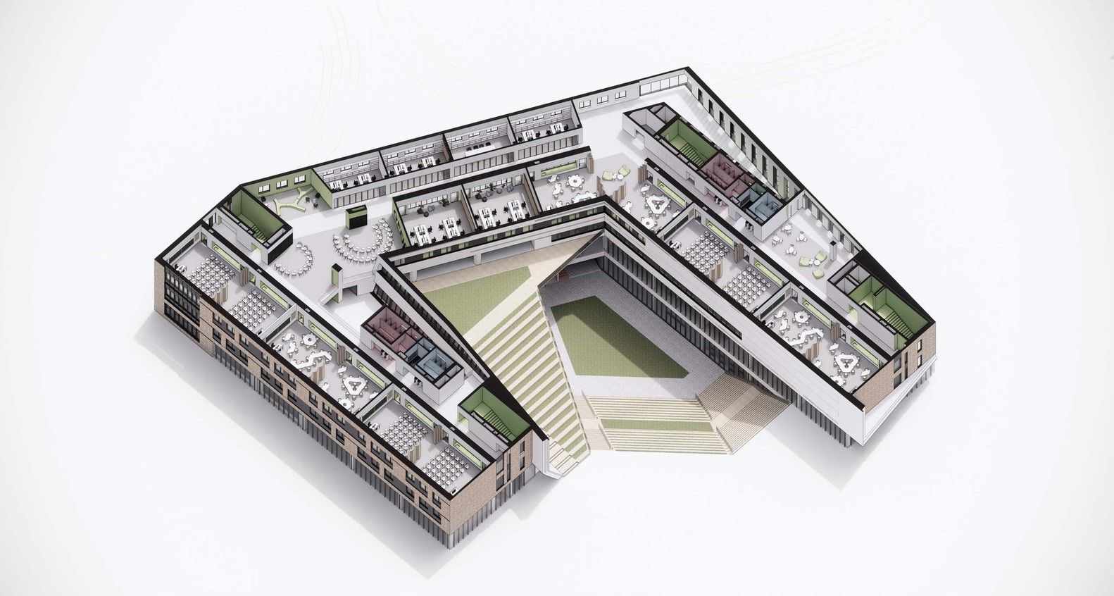 Teaching, office, and apartment are above the ground, which is relatively quiet, on the contrary, the underground space is a relatively more active and lively place. That tells the dynamic and static area of the whole campus apart obviously. In addition, the underground has a good energy-saving environment, which can improve the energy consumption situation of the large venues.