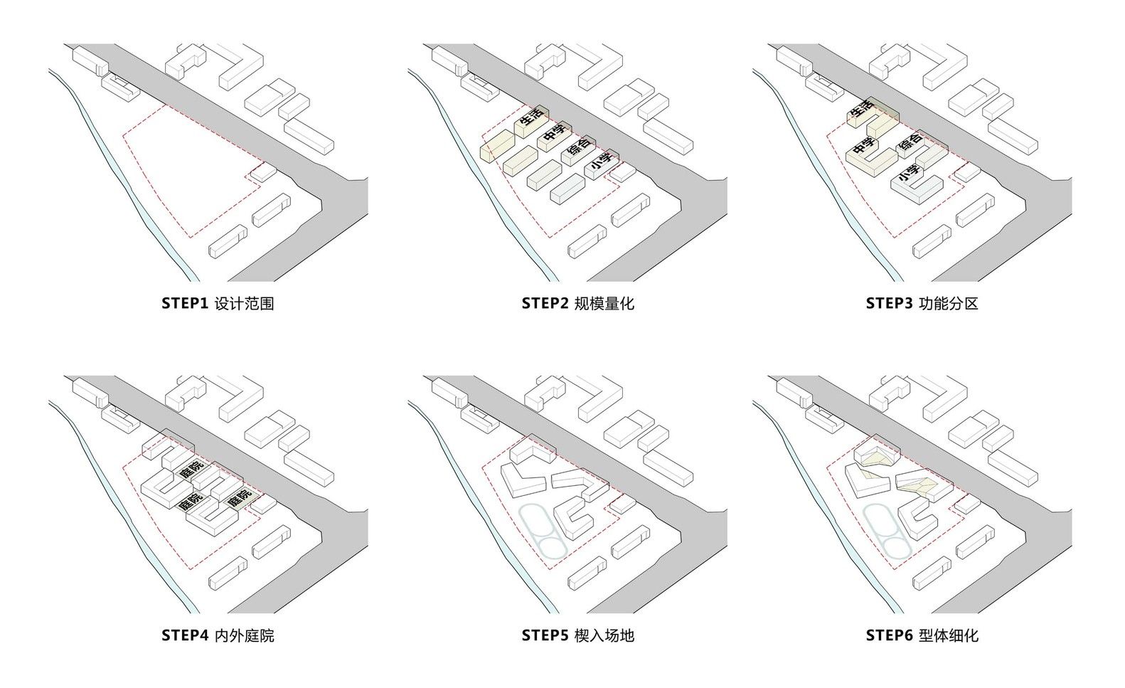 So we tried to construct the campus by vertical refactoring, which can solve the problem between the big scale of the school and Limited land resources. The strategy includes two items: fully explore underground space and maximize the use of floor ground space.