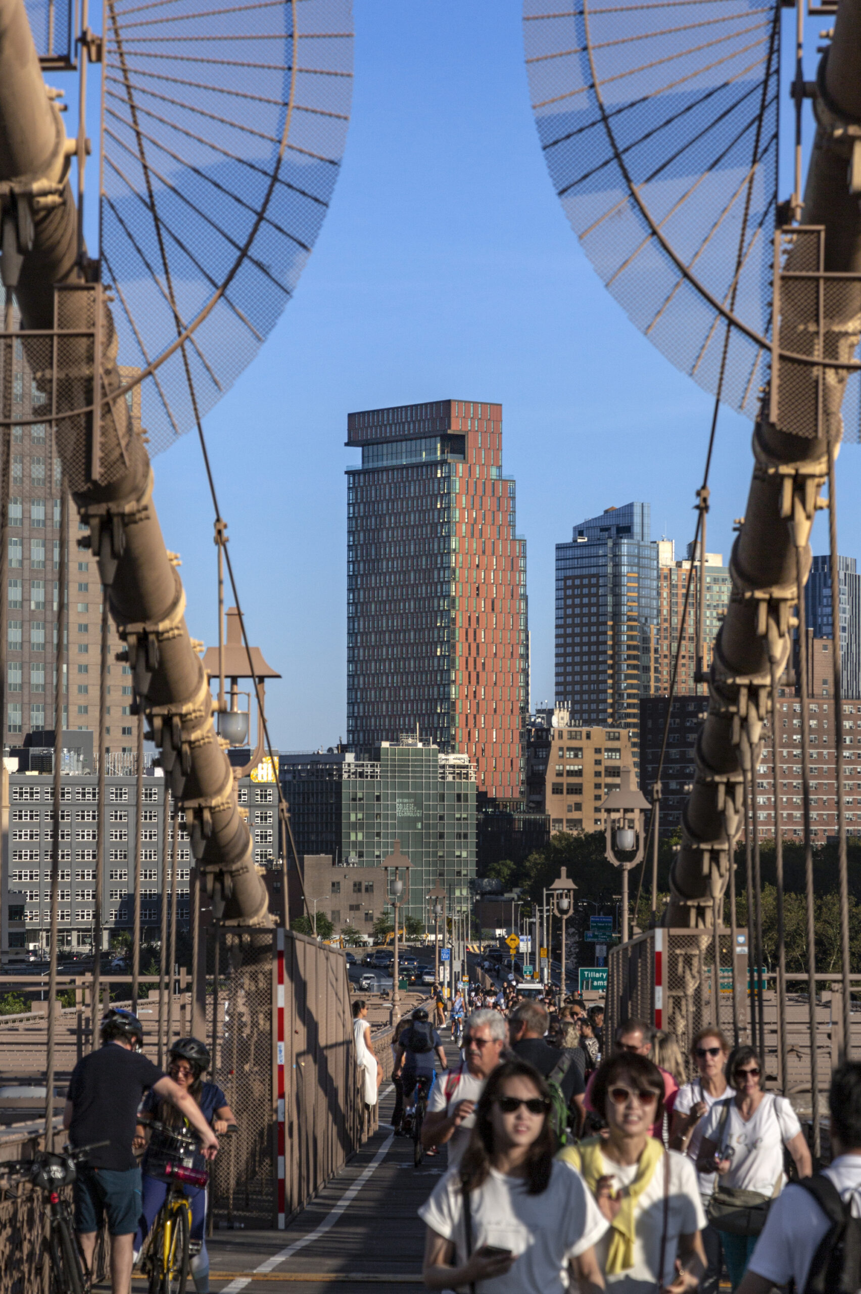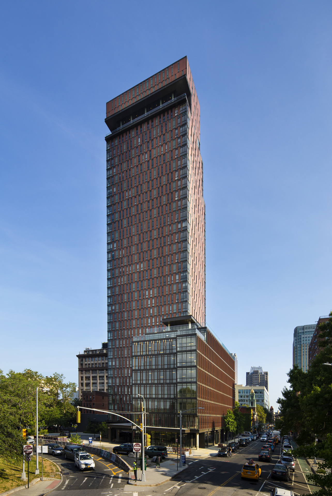 The Amberly Office + Residential Building, This 37-story building is the firm’s first tower in North America. The large-scale, mixed-use development resides at the intersection of some of New York’s fastest-growing neighborhoods: Brooklyn Heights, DUMBO and Downtown Brooklyn. The form, materiality and open spaces were designed specifically for the scale of Downtown Brooklyn, the creative ambiance of DUMBO and the material character of brownstone Brooklyn. Comprised of 270 apartments varying from studios, one-,two-, and three-bedroom units, tenants have access to retail, commercial and below-grade parking areas and a fitness center. The pattern of the warm terracotta-colored façade was determined by the building’s uses. Opaque panels cover the bathrooms, while the living and dining areas are flooded with natural light through floor-to-ceiling vision glass, as well as those expansive views. Some of the apartments have terraces—a luxury for such a dense city—as well as rooftop access.