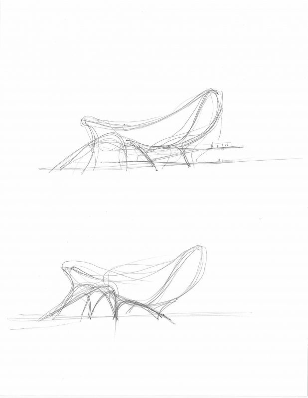 The architecture is comprised of a vessel shaped form that is clad in silver fritted ETFE pillows that through a play of transparency and geometry creates an ephemeral effect.