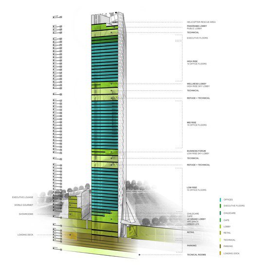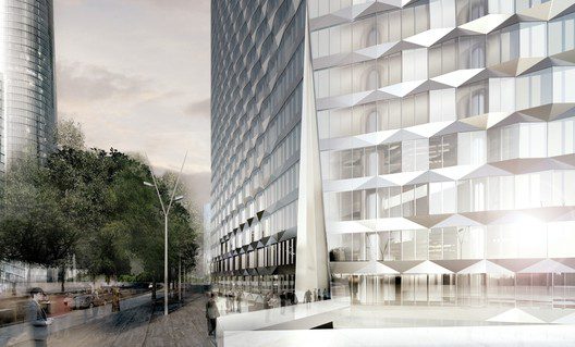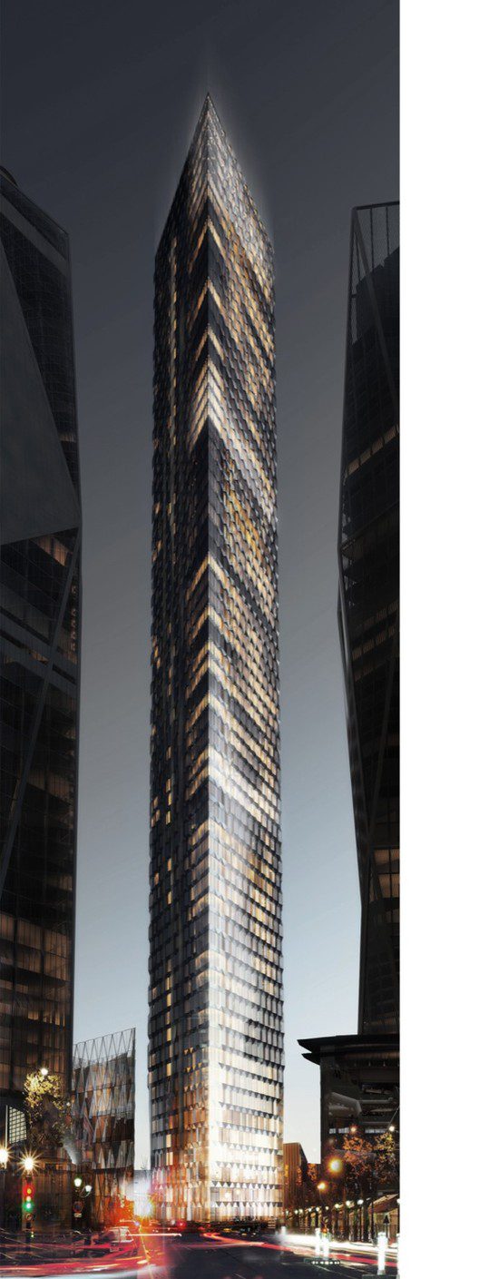 The Blade, Dominique Perrault Architecture has been selected to build the massively high Blade skyscraper located within the Seoul, South Korea, whose master plan was designed by Daniel Libeskind. The tower, the Blade, is a 300 meter height and has impressive facades. More images from Dominique Perrault Architecture come after the jump.