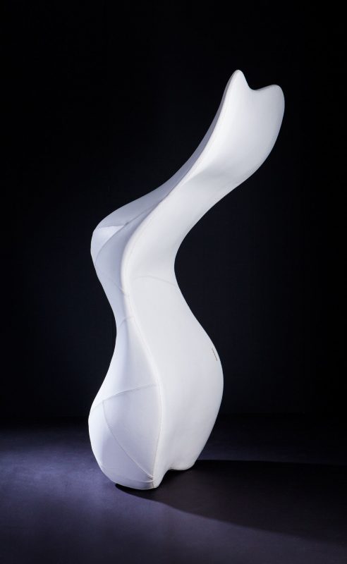 When poised vertically it takes the form of an anthropomorphic sculpture, but in other eyes this could be a bust, derrière or even an arched foot. The elegance of this chair is the way it rocks and pauses in mod-air, giving that sense of weightlessness, defying gravity it self.