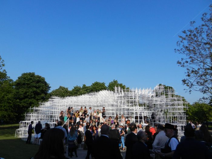 The pavilion nicknamed the “cloud” was revealed in Hyde Park London for people to interact with and explore. It is generated through a three-dimensional steel grid of about 40 centimeter modules which morphs on each side.