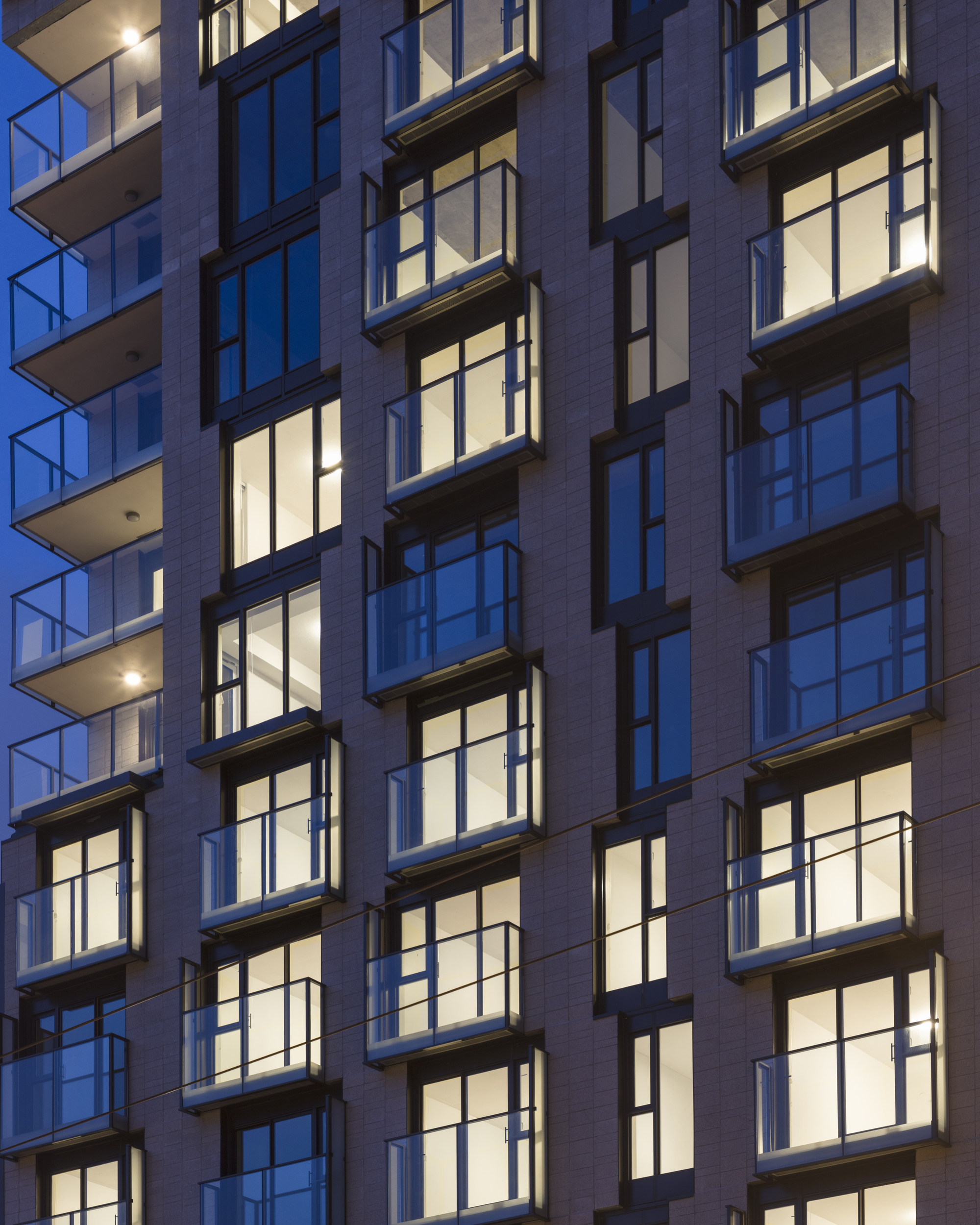 The rental units are oriented outward, with a staggered elevational treatment that reflects the shifting nature of the traffic pattern passing by on the adjacent arterial thoroughfare. The building has a robust character and quality that features masonry cladding with steel and glass finishes. Studio units have shallow ‘Juliet’ balconies, while larger family units feature larger projecting balconies. The overwhelmingly positive response from residents suggest that The Duke may have set an important precedent – one likely to be followed by many future developments in Vancouver.