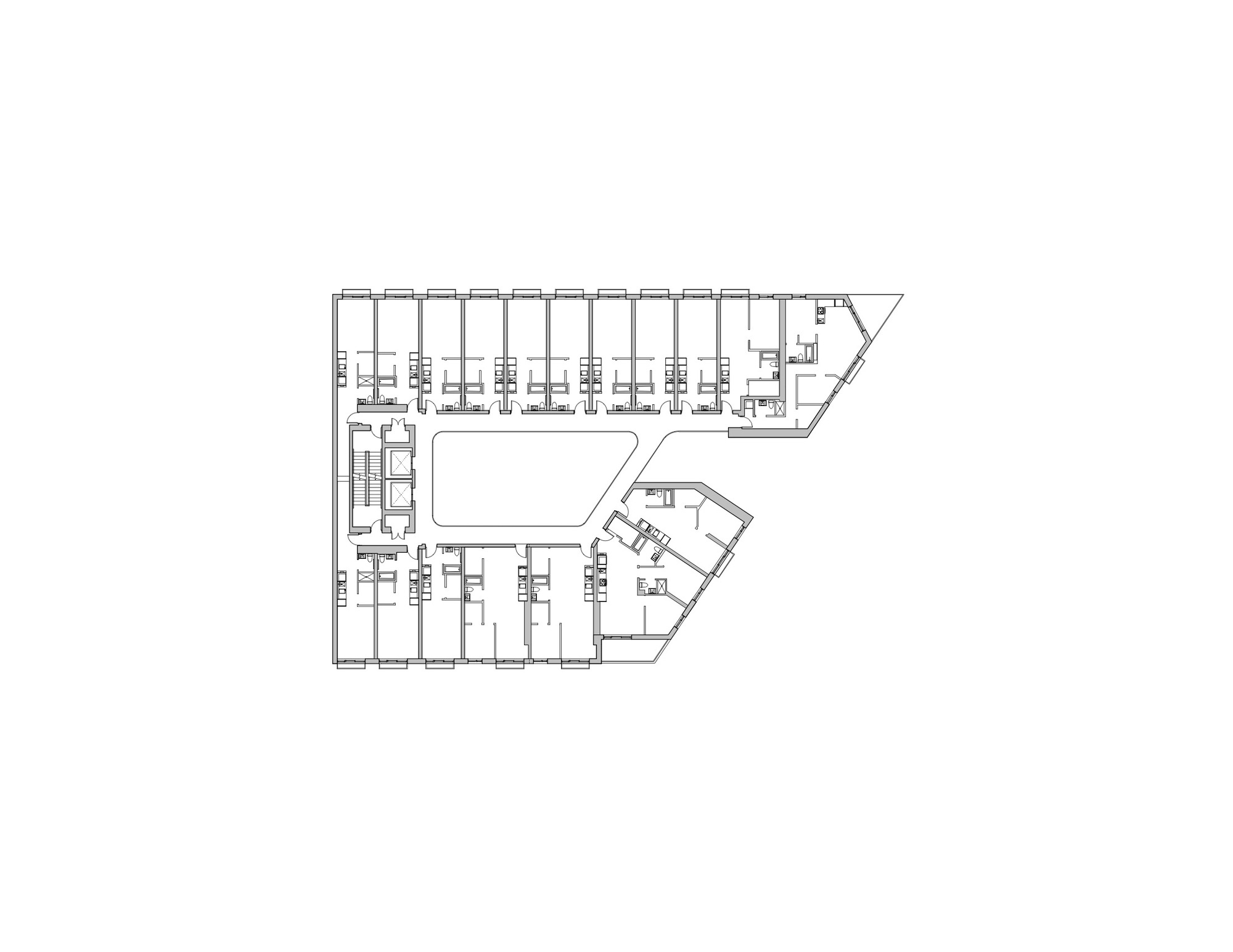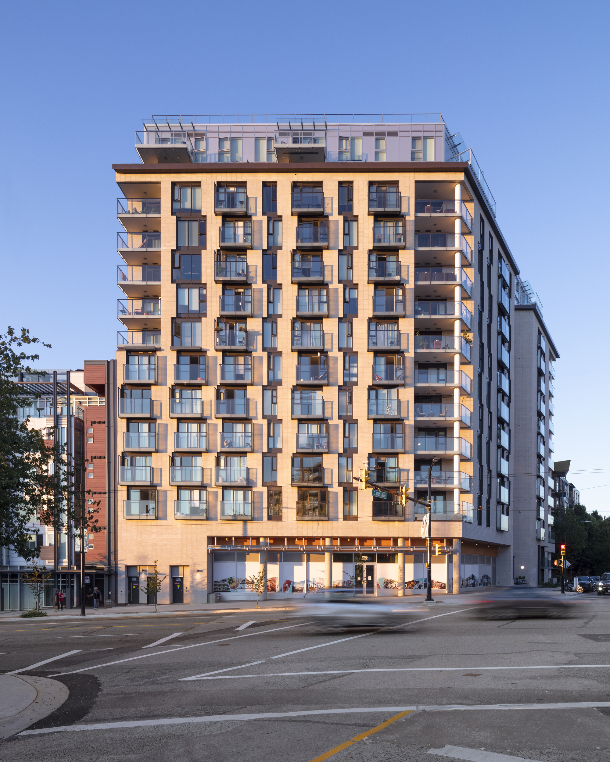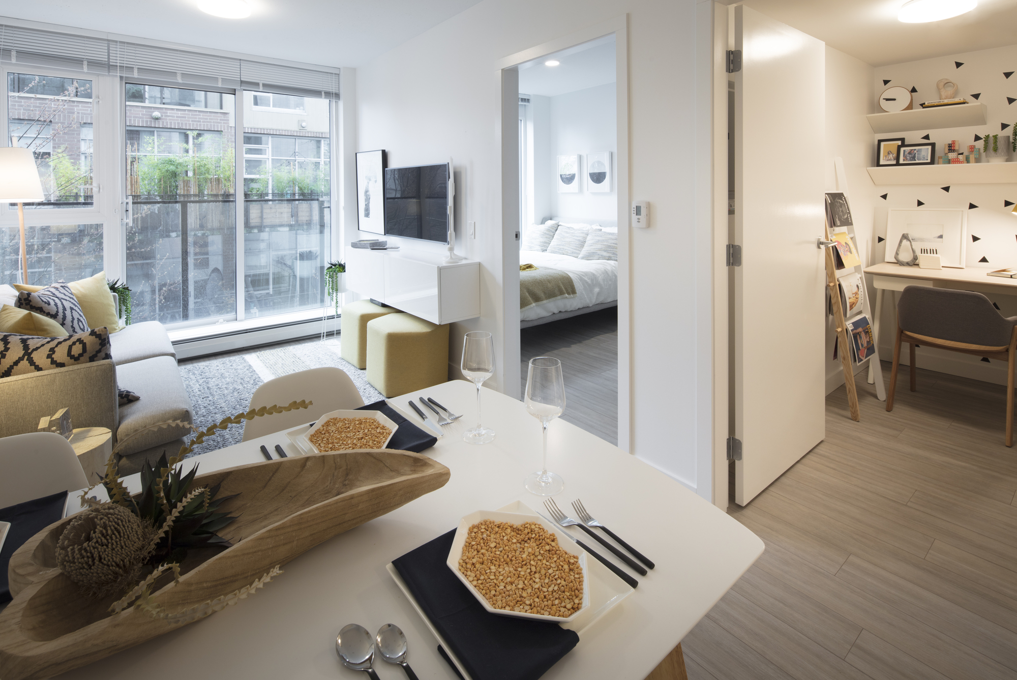 The Duke Housing, In recent years, the City of Vancouver introduced housing policies to address current and future needs for housing affordability and choice in the ever-evolving urban environment. The new policies allow strategically located sites to be rezoned to permit greater height and density in exchange for developers committing to provide and operate rental housing for a period of 60 years or for the life of the building. The Duke responds to these challenges with a new rental building typology inspired by precedents from the UK. The Duke is a 14-storey mixed-use development with 12-storeys of residential rental accommodation located above a two-storey commercial podium. The unit mix comprises 25% two-bedroom family units with one-bedroom and studio units making up the balance.