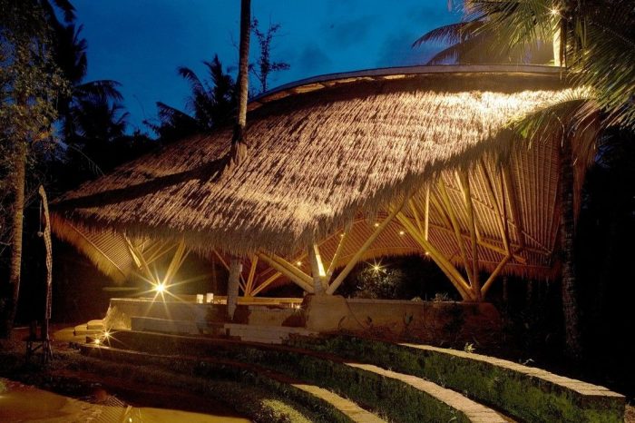 Environmentalists and designers John and Cynthia Hardy wanted to motivate communities to live sustainably. Part of that effort was to show people how to build with sustainable materials, namely bamboo. They established the Green School, and its affiliates: the Meranggi Foundation, which develops plantations of bamboo plants through presenting bamboo seedlings to local rice farmers; and PT Bambu, a for-profit design and construction company that promotes the use of bamboo as a primary building material, in an effort to avoid the further depletion of rainforests.
