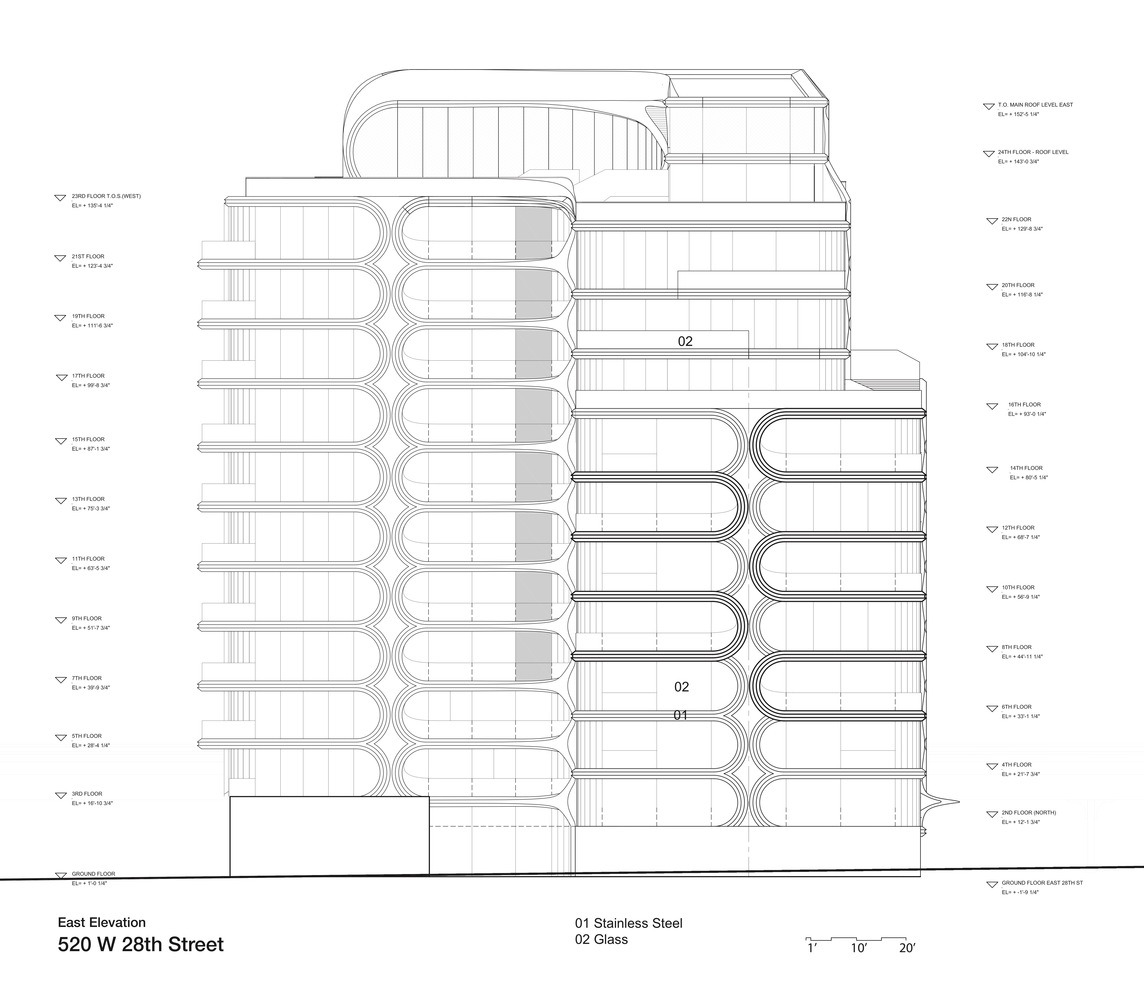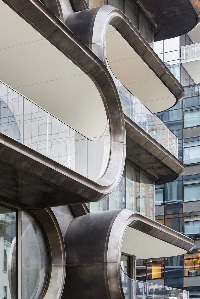 So, She designed the high-line installation, measuring 112 feet (34 meters) in length and 14.5 feet (4.4 meters) in height, with the function of equipping the pedestrians with necessary overhead protection while passing by the construction site from the High Line (the popular Manhattan park that was formerly a derelict railway. The linear park’s central pathway passes under the Hadid installation) to 520 West 28th Street.