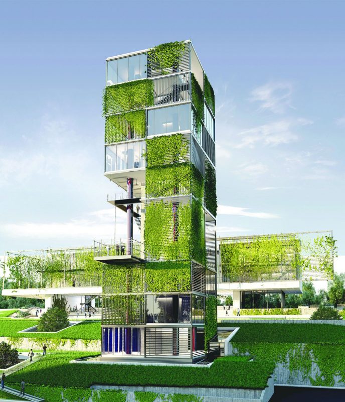 The vertical farm tower is a flexible structure in terms of height and size and it allows for future expansions or alterations to adapt to potential limitations of different sources. It is an integrated system of hydroponic farming and renewable energy to maximize productivity and ensure environmental sustainability.
