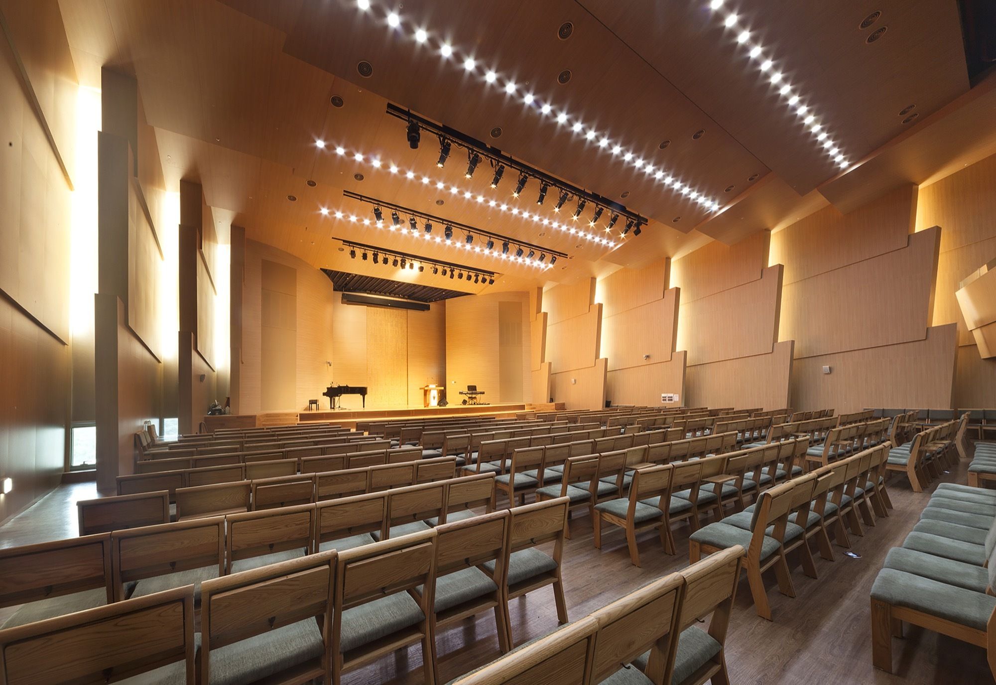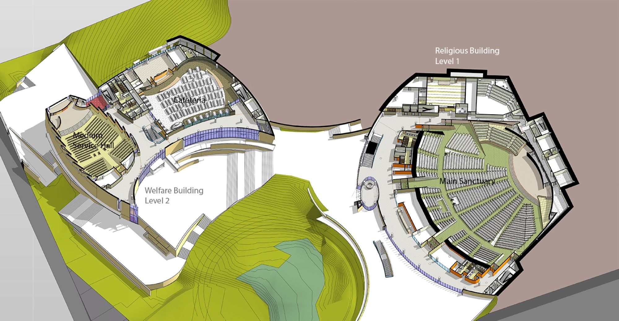 Beck’s solution provided a 383,500 SF design that integrated into the landscape with gently flowing lines that wrap around a large central plaza. Spaces included a 2700-seat sanctuary, 800-seat chapel, cafeteria, cafe, library, fitness facilities, children’s and youth spaces, welfare ministry facilities and a 350 car underground parking garage.  Placement of the buildings into the natural hillsides and careful orientation of the windows allowed ample natural light into the spaces while providing greater energy efficiency.  Forms and patterns in the architecture were inspired by traditional Korean crafts and calligraphy, and the use of natural materials and colors further harmonized the entire building into its unique place.