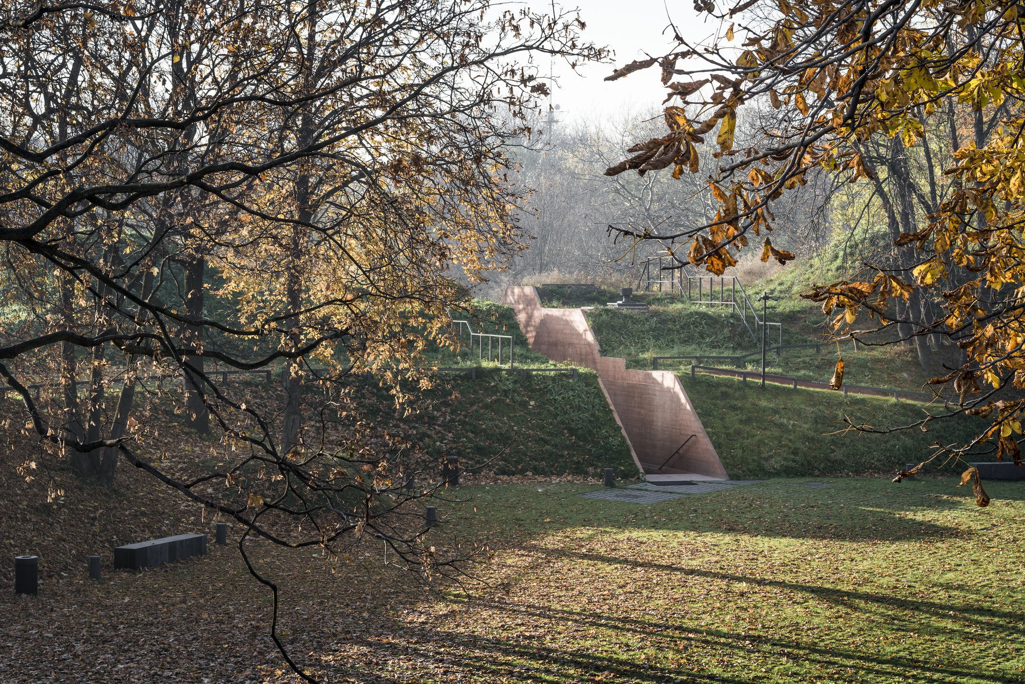 The principal design premise was to create a space dedicated to silence and contemplation. The architects selected simple materials such as brick, plaster, and stained concrete. The spatial layout of the Katyń Museum was designed as a differentiated experience of objects and spaces, forming a cohesive architectural narrative. The whole complex was designed as a park, with a symbolic Katyń forest in the center of the main square. The 100 trees planted there refer to the truth about the dreadful war crime, which used to be concealed in the woods for more than 50 years. The main exposition is arranged on two levels of the Caponier—a historic fortification structure. The first level contains information about the Katyń massacre, where visitors can learn about historical facts and see exhibits found in the mass graves in Katyń forest. The second level of the exhibition is devoted to personal tragedies of the victims’ families, constituting a place for contemplation.