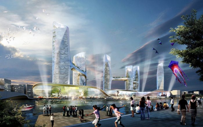 Linked Towers are UNStudio’s proposal for the Tongzhou Central Business District in Beijing, China. A dynamic composition consisting of six towers, the design introduces an asymmetry in the plan, orientation, clustering, and façade treatment. The use of asymmetry in this effect creates a far-reaching urban effect while simultaneously relating to users on a more personal scale.