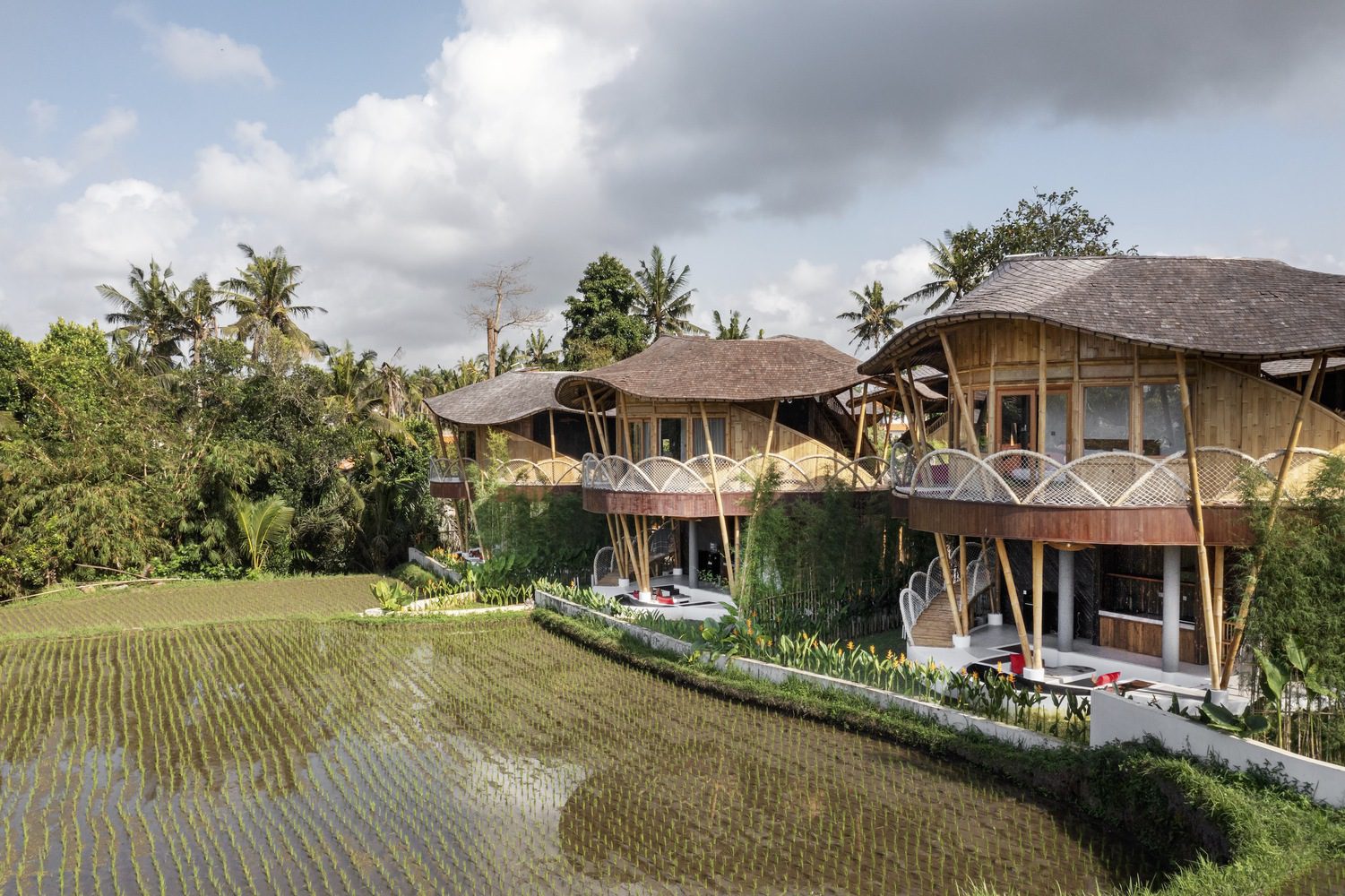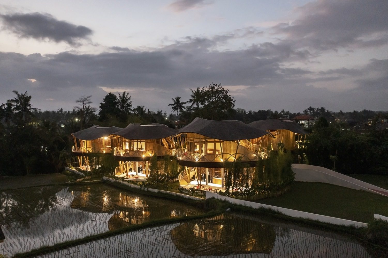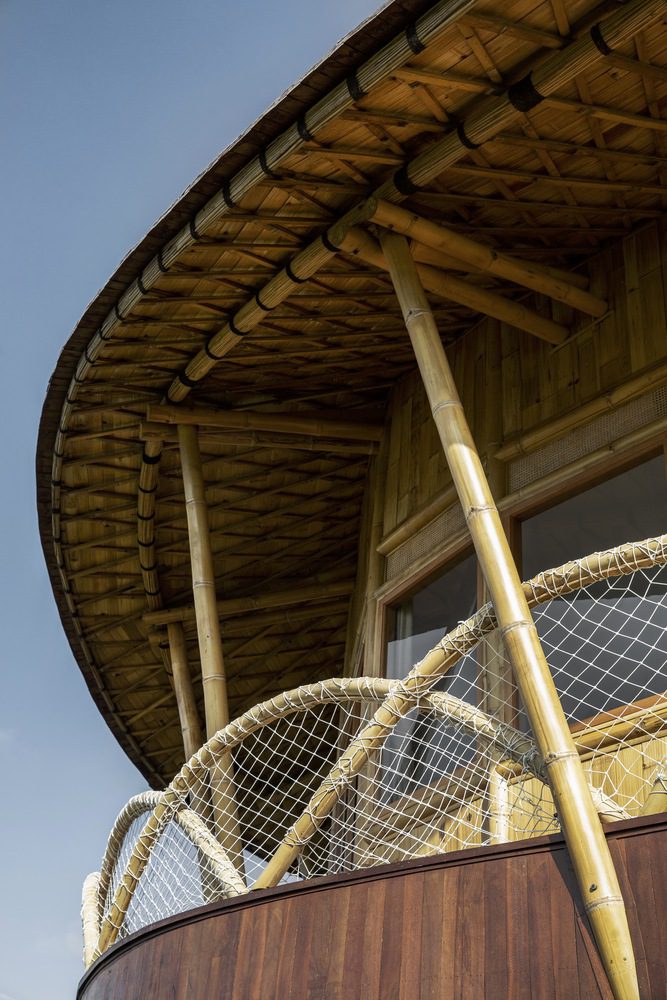 Sustainability is interwoven throughout the architectural details, from the bamboo roof structure—spanning an impressive 200 meters over the lobby and harvesting rainwater to irrigate the landscape—to the use of recycled plastic waste as parking pavers. These features not only reduce the operational costs of the villa but also align with a broader sustainability movement, ensuring the project leaves a minimal environmental impact while maximizing long-term ROI.