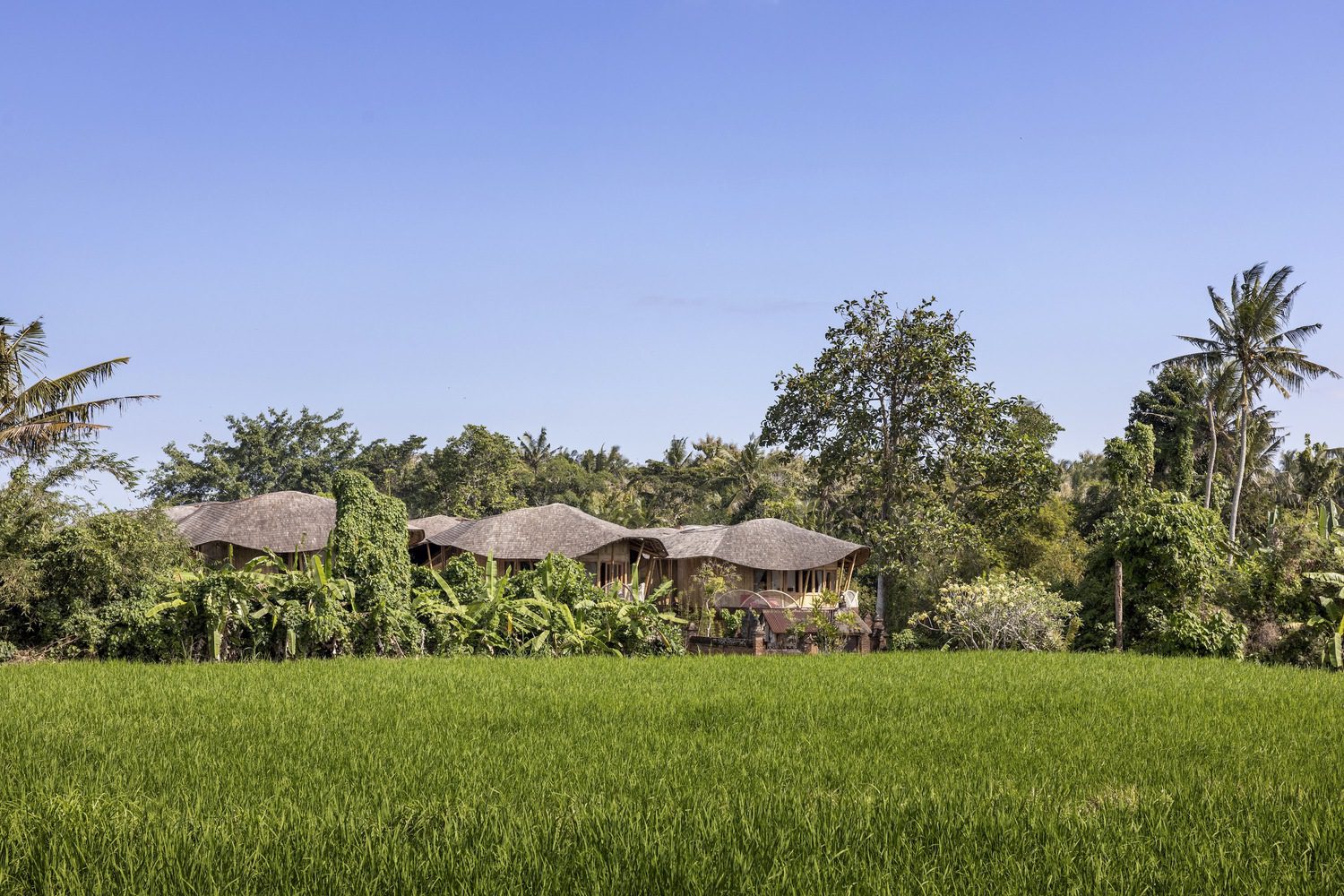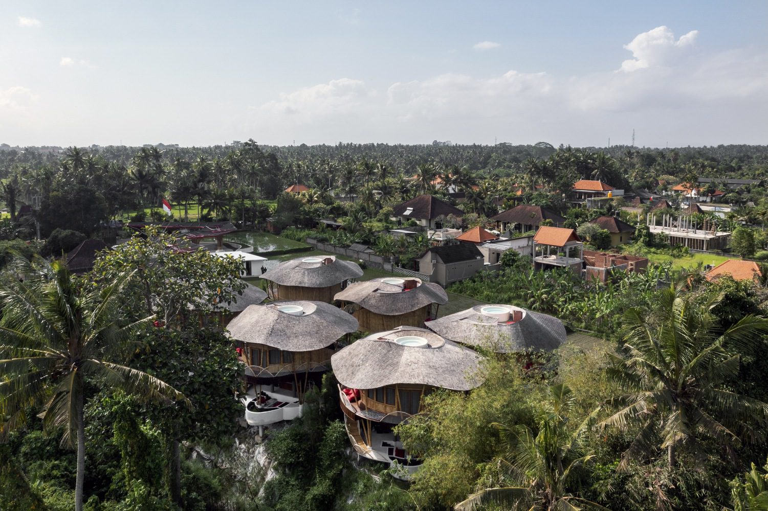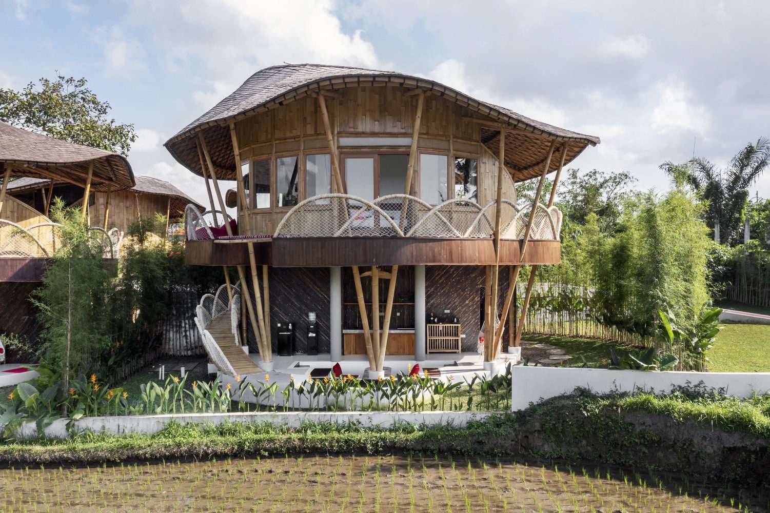 Sustainability is interwoven throughout the architectural details, from the bamboo roof structure—spanning an impressive 200 meters over the lobby and harvesting rainwater to irrigate the landscape—to the use of recycled plastic waste as parking pavers. These features not only reduce the operational costs of the villa but also align with a broader sustainability movement, ensuring the project leaves a minimal environmental impact while maximizing long-term ROI.