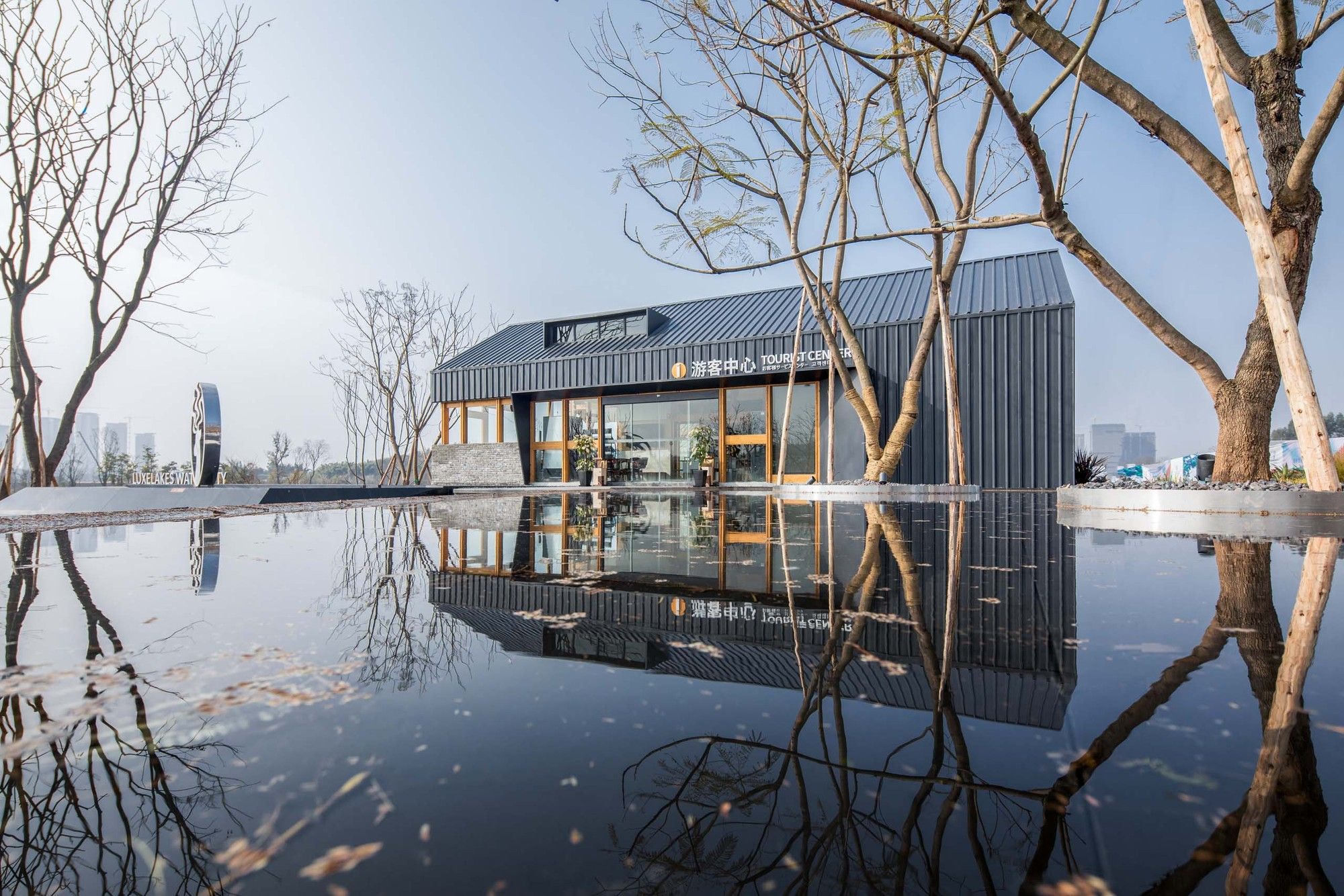 According to the schedule of Luxelakes Water City, the Tourist Center is required to complete the design and put into use within 5 months, so the project design team gives priority to the prefabricated building.