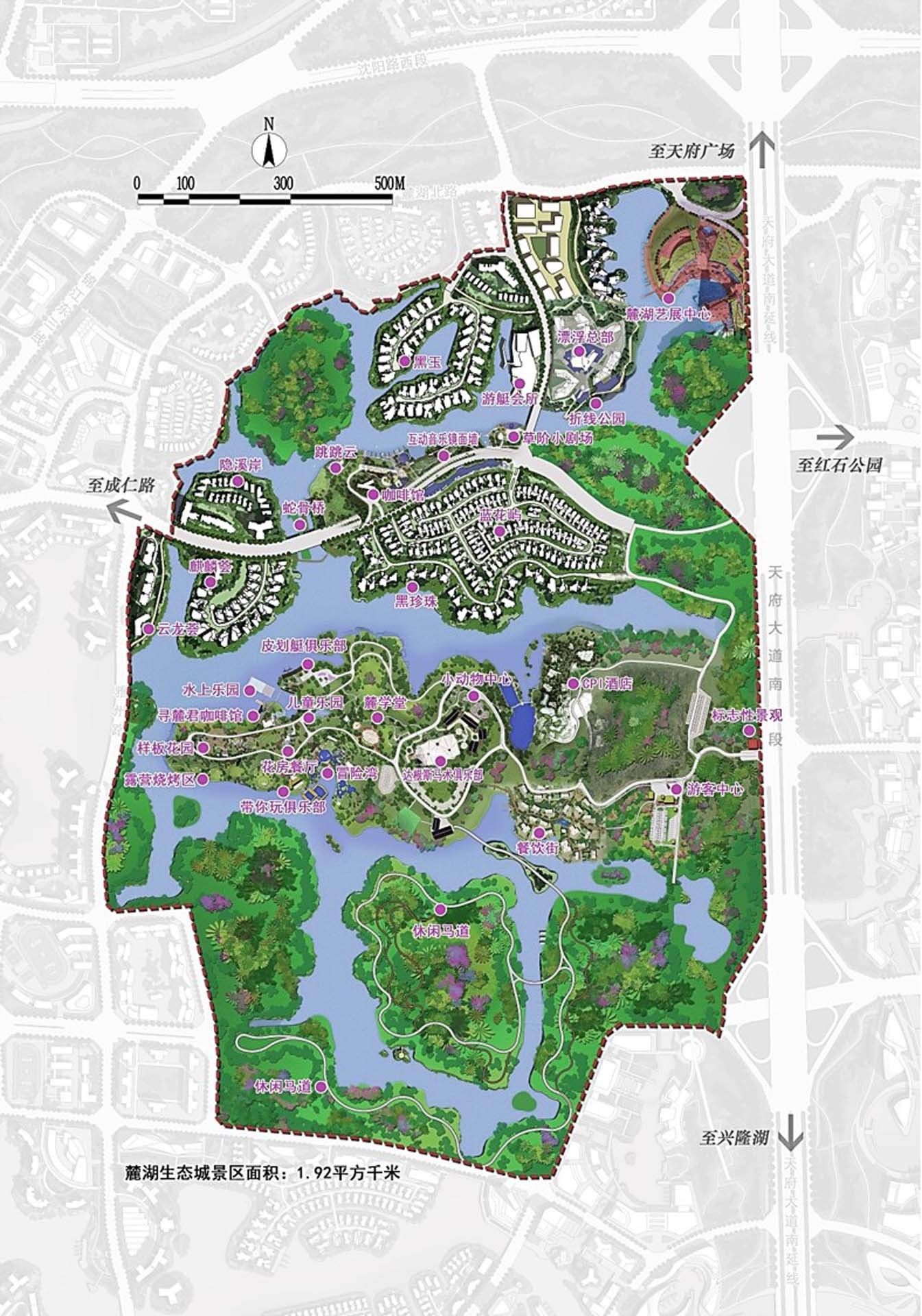 Designed by HC+2 Studio, Luxelakes Water City Scenic Area, located in the southern section of Tianfu Avenue in Chengdu, covers an area of 1.92 square kilometers. It was rated as a 4A-level tourist scenic spot by China National Tourism Administration on March 27, 2019, and became the “central porch” that connecting Chengdu with the core area of Tianfu New Area.