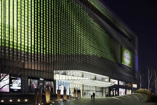 Its spatial layout is responsible for the fluid flow of visitors’ transition going upward all the way to the rooftop terrace. Visitors’ experience is improved and eased via spatial and visual connections – in a large-scale environment they are crucial to the generation of a comforting environment, which would stimulate different activities and engage people in social interactions. During nighttime, the external façade of the Galleria Cheonan is illuminated with computer-generated animations especially designed by UNstudio and contain themes such as fashion, art, public life and lifestyle.