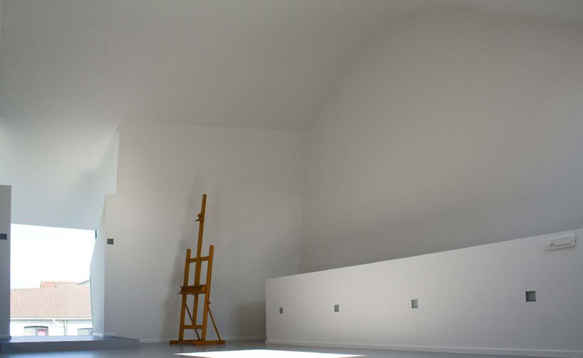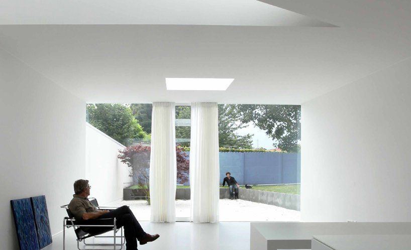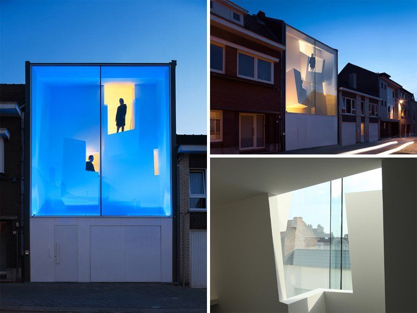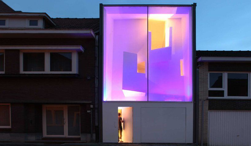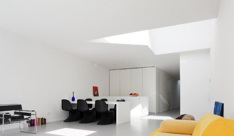 The “narrow house” is a 5.30 m wide house situated on an equally narrow site in Bilzen, Belgium, near the Holland frontier. The clients are middle aged with a passion for the arts. Their house is the architect’s first realised project.