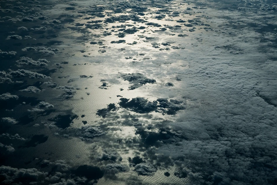 The old phrase of ‘Stranger than fiction‘ comes to mind when considering these photographic works by the professional photographer Jakob Wagner.In his two series, Sea of Clouds (2010) and Caribbean Sea (2012), both shot from aircraft, it is easy to overlook the seemingly tiny surface waves and lose reference.