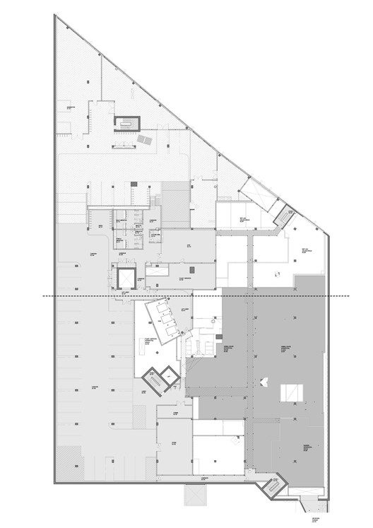 It also displays a level of symmetry that is easily explored through the white minimalistic tone of the interior spaces, to the dynamic, energetic qualities of the exterior. The shadows the exterior casts onto the interior spaces illustrates a level of depth within the building and acts as an interesting canvas, depicting the unique pattern from the triangular mesh.