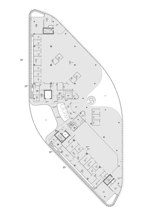 The design approach helps facilitate a way for researchers to invest their time in developing innovative means to drastically benefit medical services as well as advance the results of health care for the greater public. The structure of the building extrudes outwards and creates a kind of overhang as it rests on top of the main entrance.