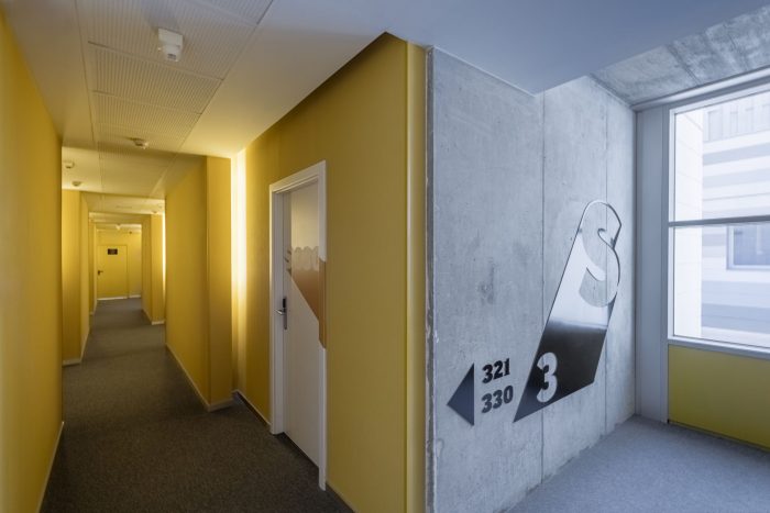 The property was designed in an eclectic style that fuses materials, colors, and textures. You’ll recognize some Memphis style with a little bit of Seventies vintage and an industrial aesthetic, among others. Each corner, decorative detail, and visual element aspires to blend perfectly with a student lifestyle by being part of their daily activities and aiming to be a source of inspiration for them.