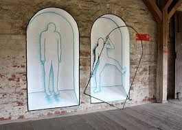 He draws these abstract outlines of figures that mingle with the space. Botlek uses the surrounding urban space not just as a base to draw on but he makes it part of his three dimensional visual experience.