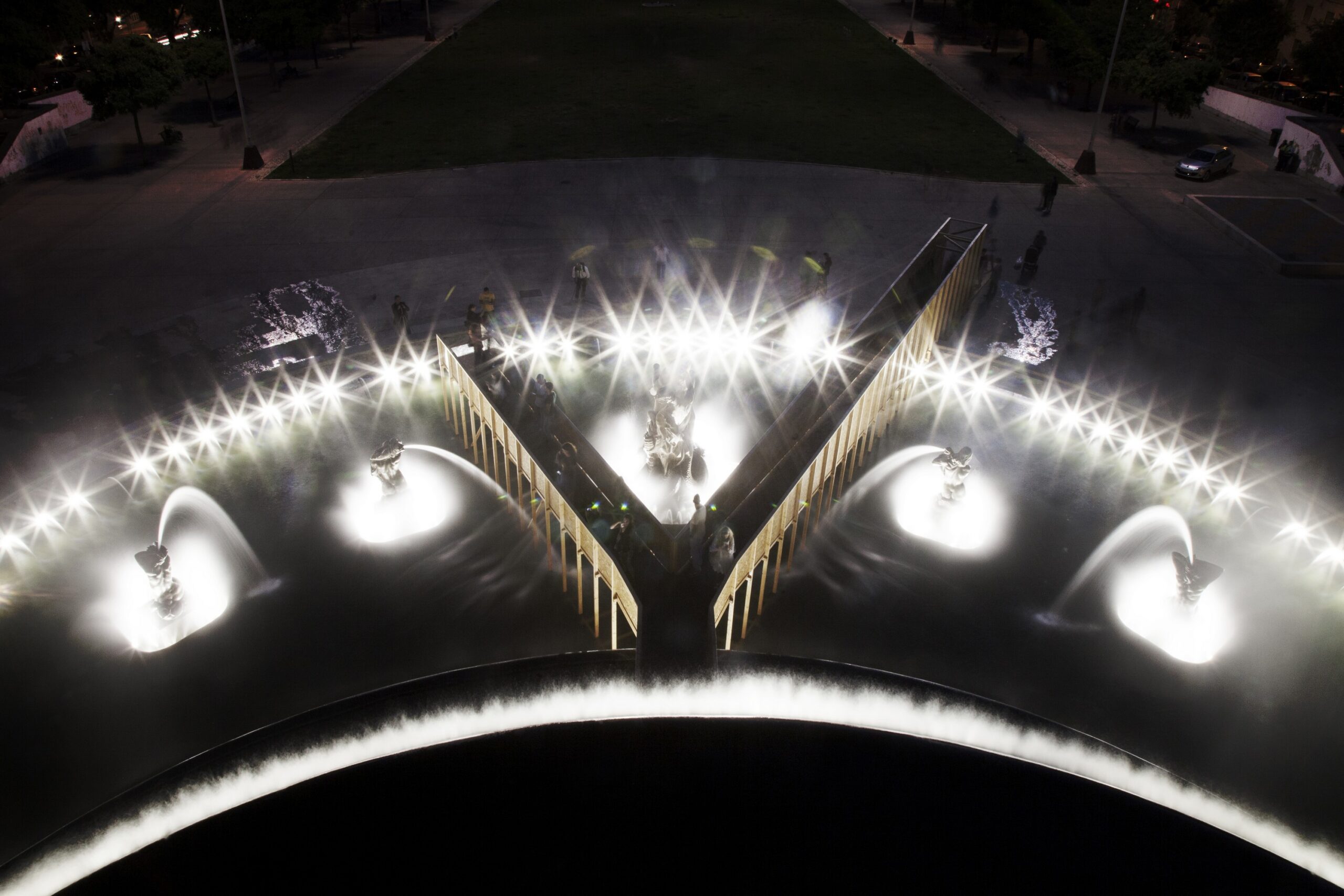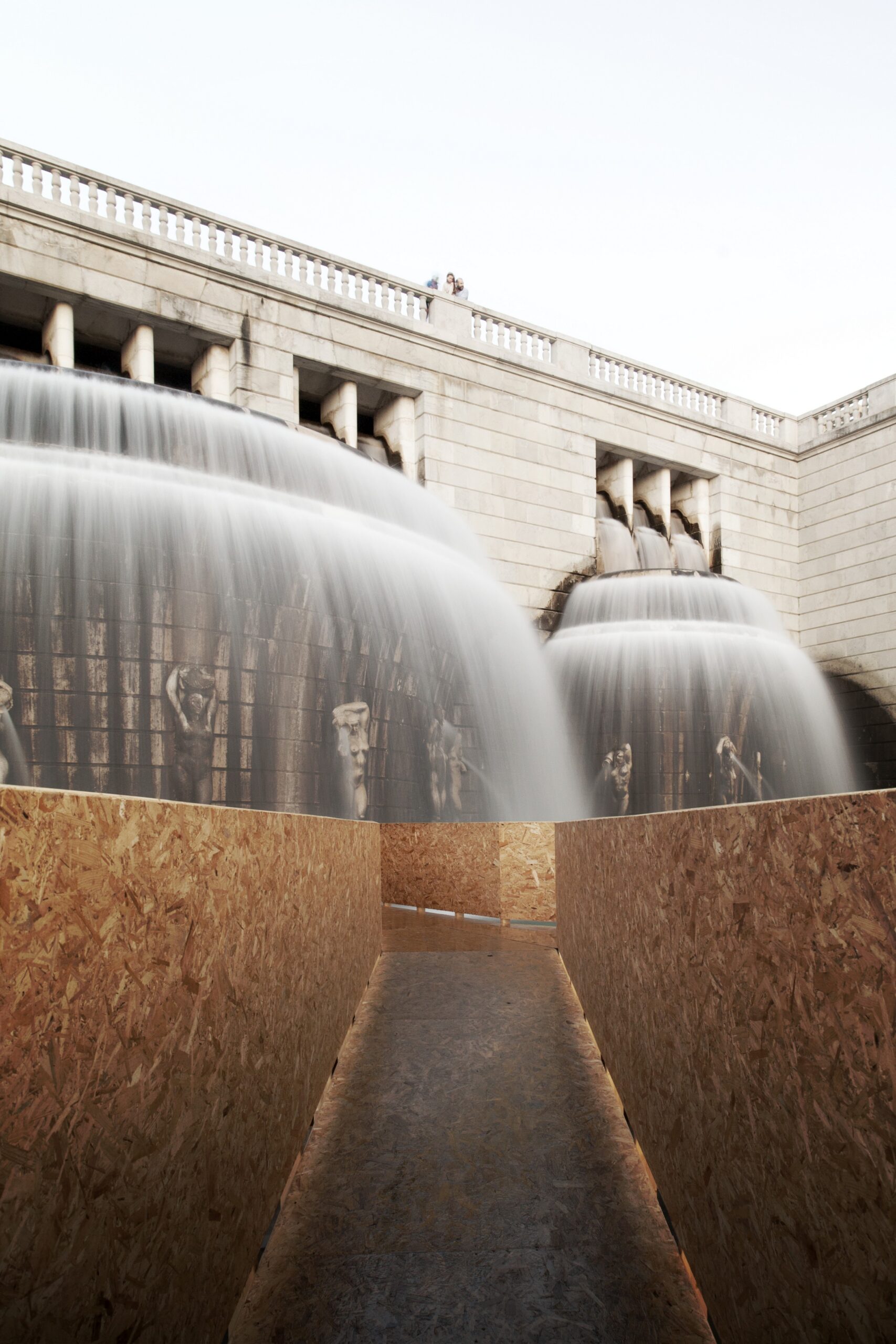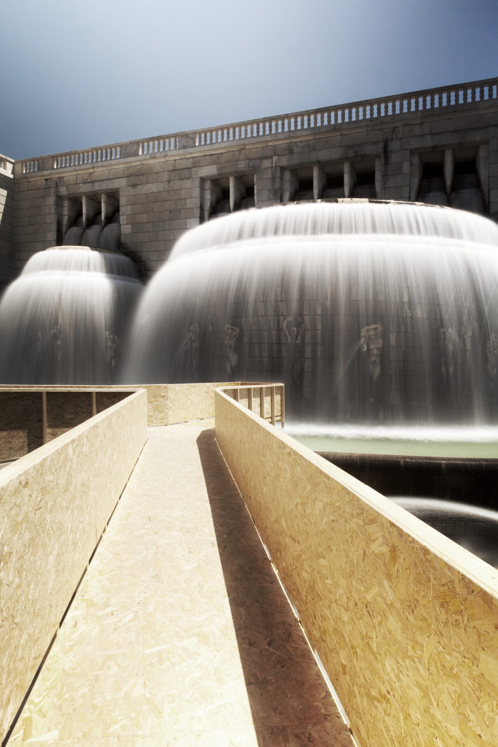 The Fonté Luminosa, a celebration to commemorate for the continuous supply of water to the eastern part of Lisbon, a pet project envisioned by two brothers Carlos Rebello de Andrade and William Rebello de Andrade which was inaugurated on the 30th of May, 1948. Marcello Dantas a Contemporary architect from Portugal, defined a transition to this once viewing spectacle, into the much more “Touch and Realize” interactive space by defining a Y type wooden platform reaching out to the fountain from the public plaza atop the Alameda Dom Afonso Henriques park. “The structure is presented as an idea of trespassing or transition to another reality. For the rediscovery of a known place, now experienced in a more complete way, covering all the senses of our body, in an experience that is meant to be total.”– Marcelo Dantas