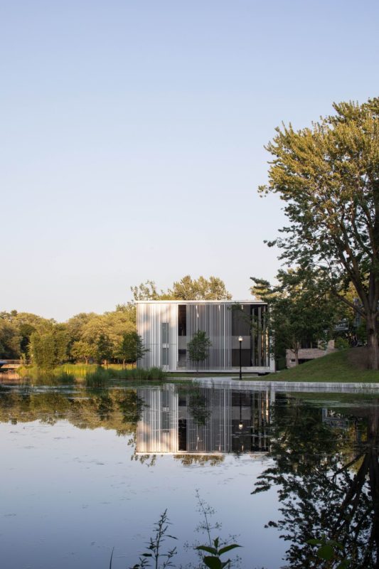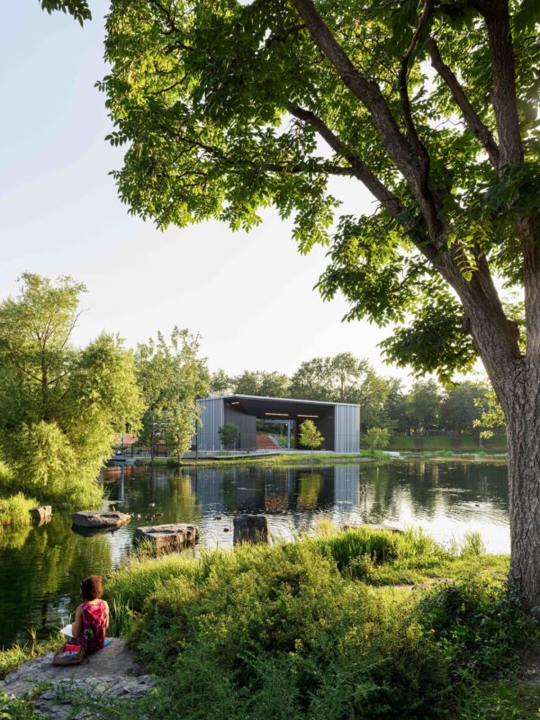 At the heart of Lemay’s approach lies their Net Positive™ framework, a testament to their commitment to minimizing environmental impact. This framework champions three fundamental principles: nurturing user well-being, supporting biodiversity, and curbing carbon emissions. The studio’s touch has been gentle on the site, focusing on augmenting the area’s green cover and weaving the theater organically into the landscape’s tapestry. This essence of openness permeates the theater’s interiors as well – spaces now seamlessly merge with the outdoors, with the green room extending gracefully over the pond.