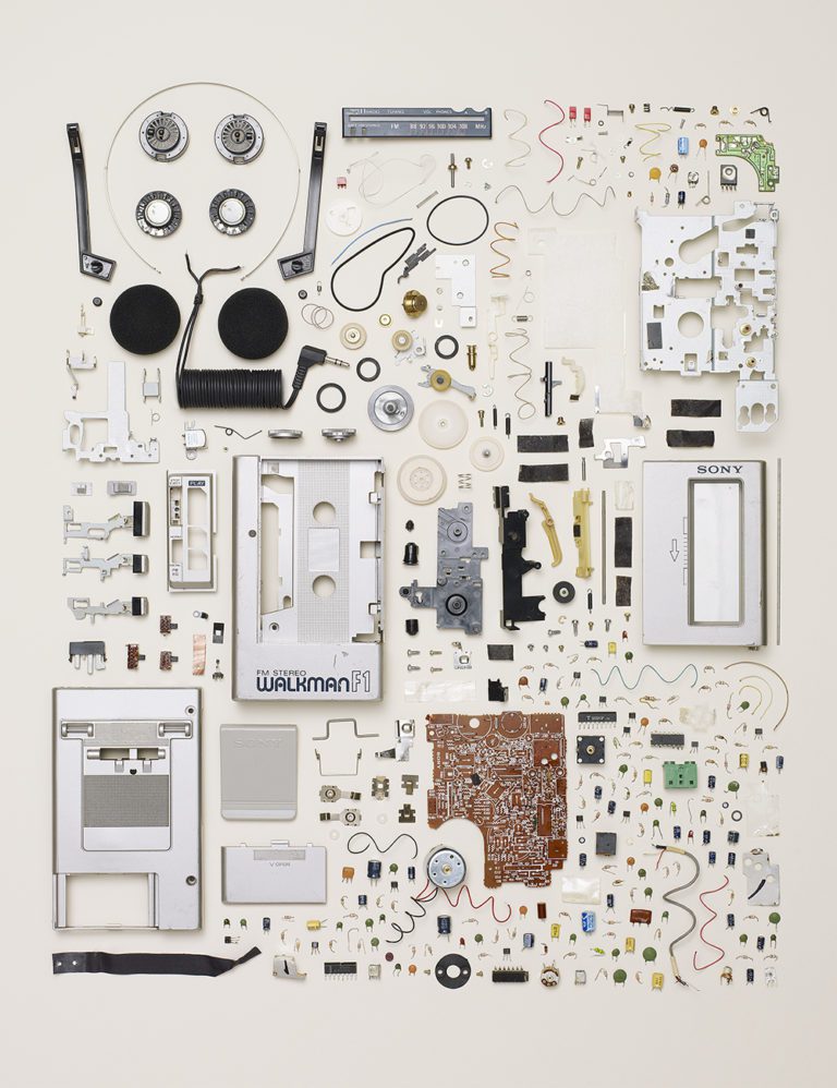 By revealing the inner workings of 50 objects and 21,959 individual components, he considers the permanence of vintage machines versus today’s manufacturing trend of quick use followed by obsolescence.