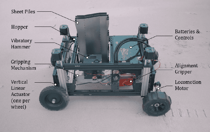 This idea has inspired many researchers in architecture and engineering to explore robot-enabled construction and fabrication techniques. However, so far there hasn’t been a solution for building foundations or otherwise anchoring into the ground, which is a requirement for useful structures. Automating sheet pile driving addresses this need.