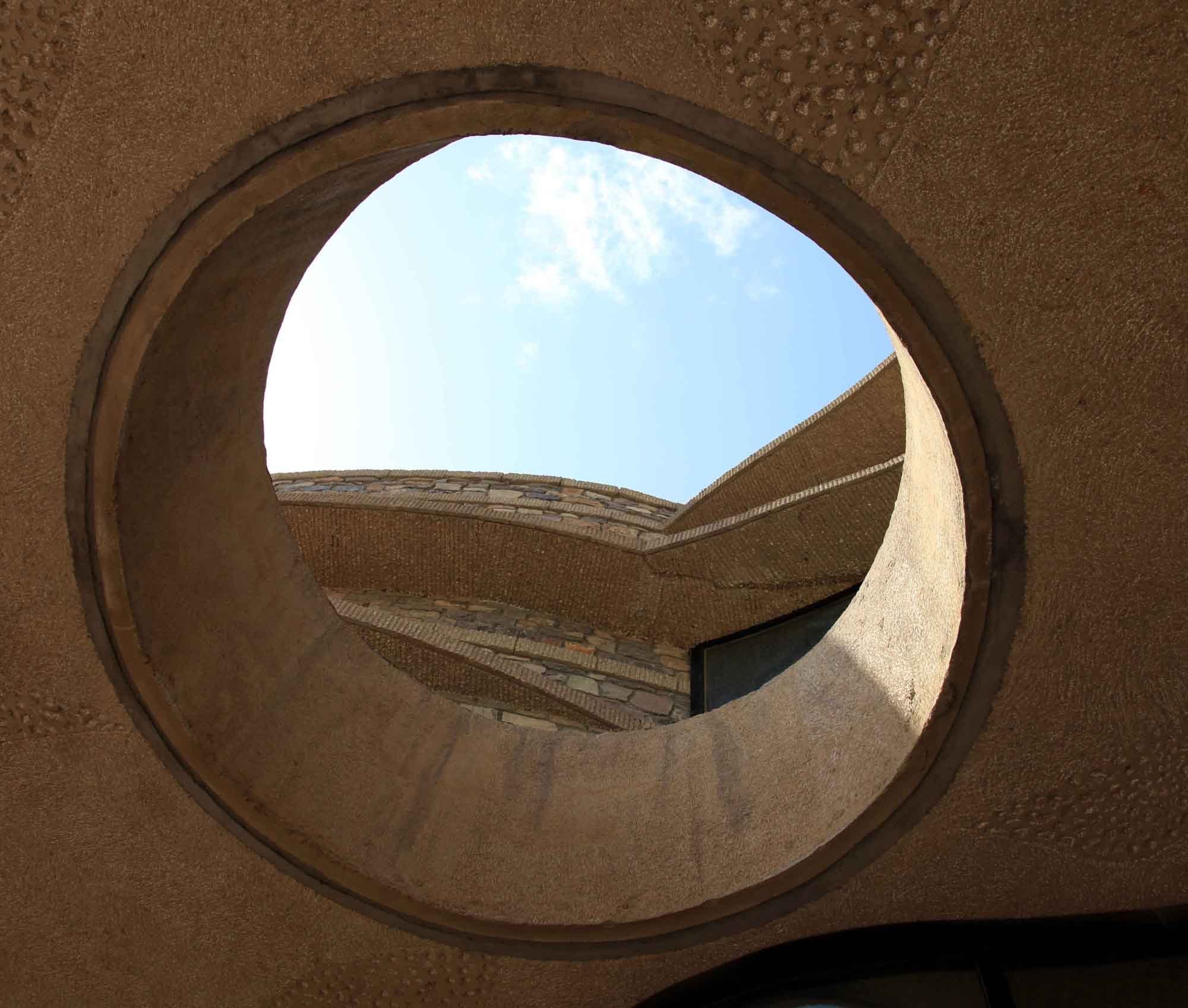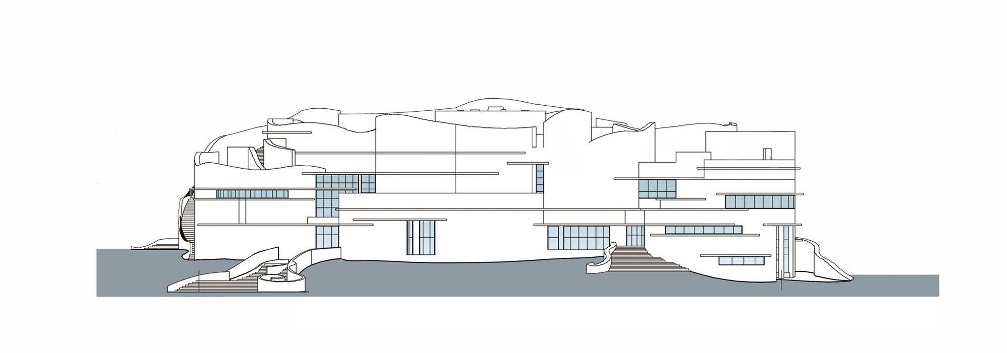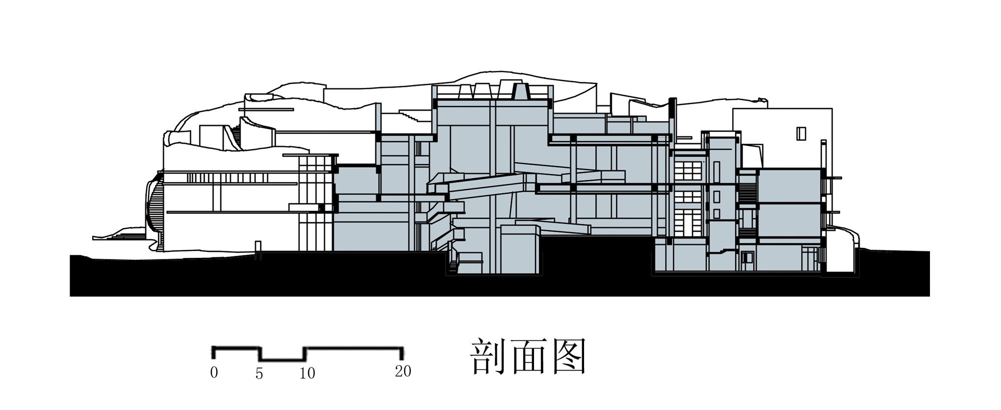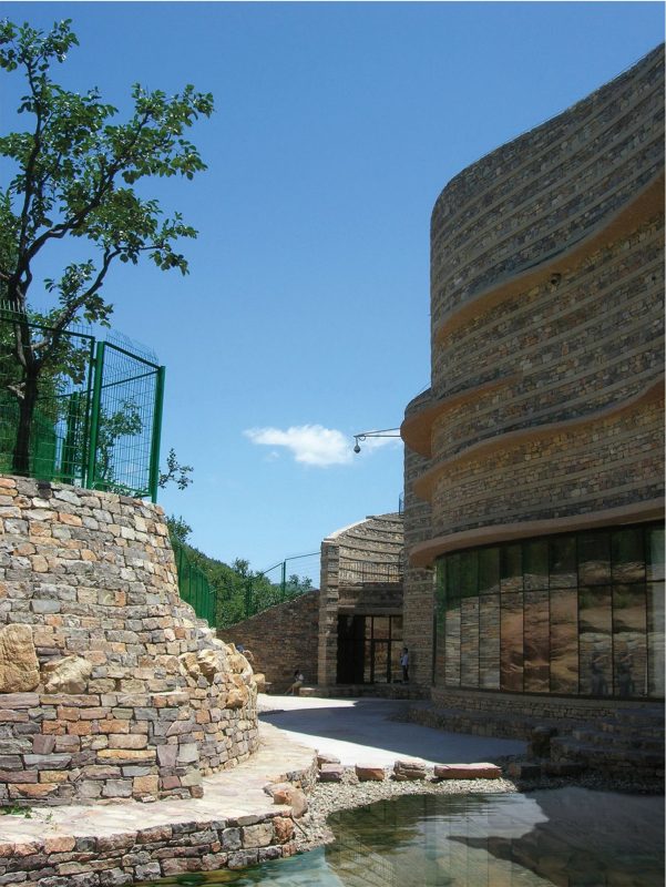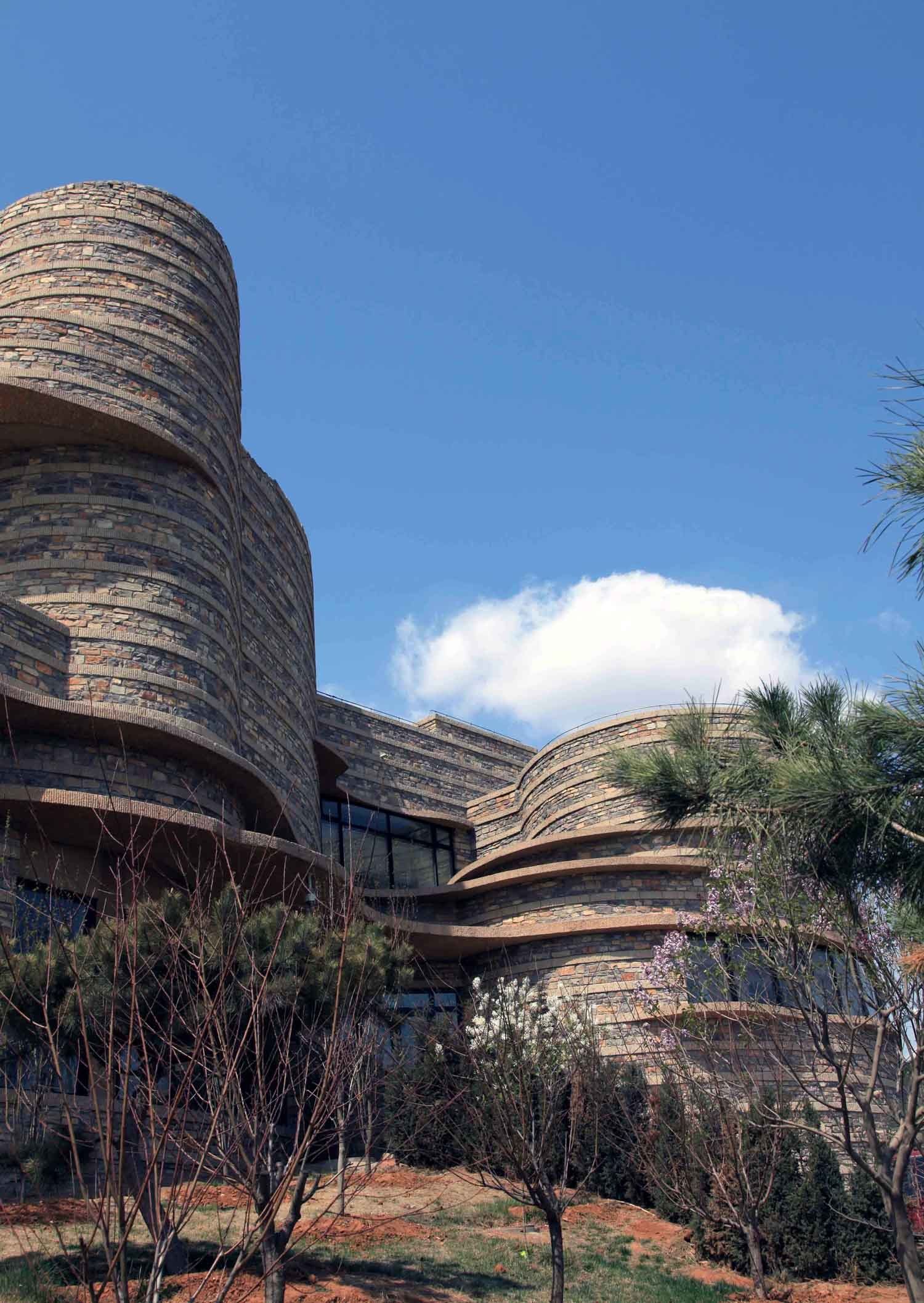 The Ji County Geological Museum has taken “the exhibition of the history of tier and fold of rocks” as its theme, using stones of rare shapes which have evolved over billions of years to construct the outline and space of the museum. The museum imitates the special forms of geological structure, forming a spiral plane layout. The irregular curving eaves and the newly built wall made of the stones from the discarded mountain houses look just like laminating stratum formed after billions of years’ sedimentation.