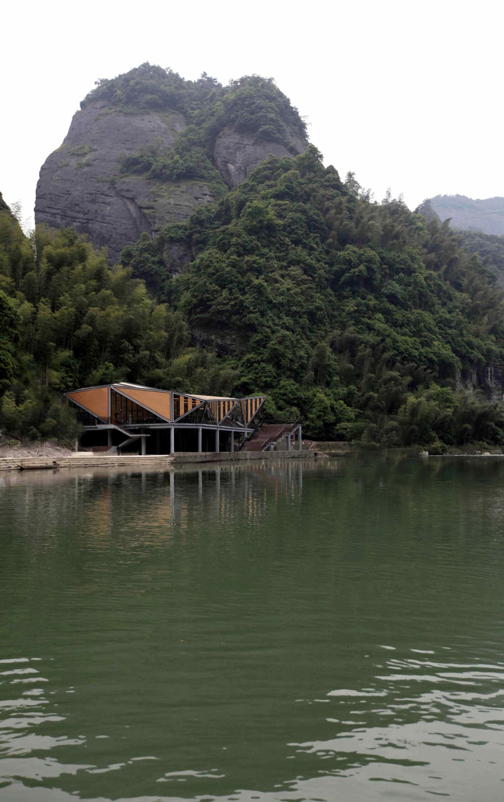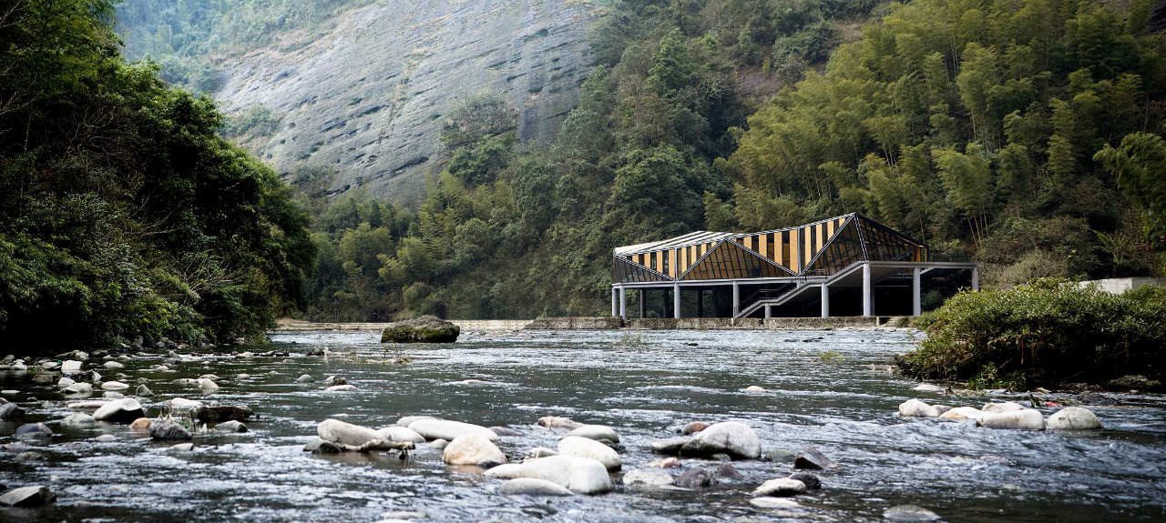 The concept is to create unique experience through combine the natural Environment with the man-made boundary surface. To respond the change of Water levels, the building is raised off the ground on steel feet, which also gives access to the river via an external staircase. The 627-square-meters interior space contains repast space, kitchen and toilet.