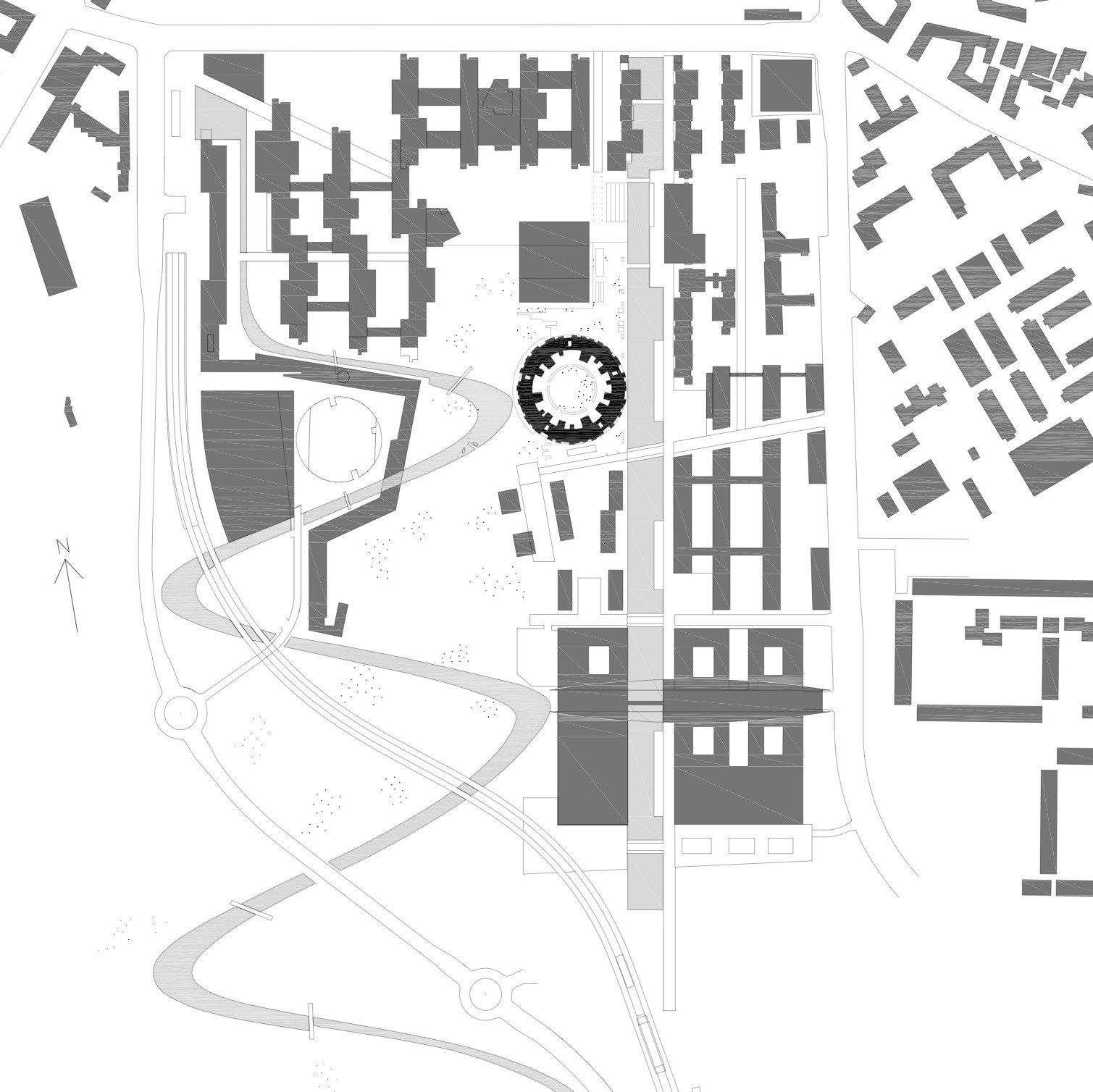 The project’s dynamic, sculptural expression is created by the contrast of the building’s overall form with the honest expression of the individual programmatic elements. The building’s circular form- symbol of equality and the communal is contrasted with individual, projecting volumes expressing the individual residences. The principle inspiration for the project is this meeting of the collective and the individual, a characteristic inherent to the dormitory building type.