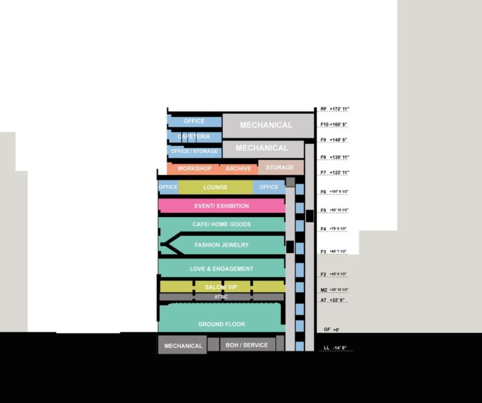 As a result of Tiffany’s consistent approach to luxury over the years—a balancing of attractive and functional concerns as a method of innovation—OMA was able to address both traits operationally and aesthetically in the building’s design.