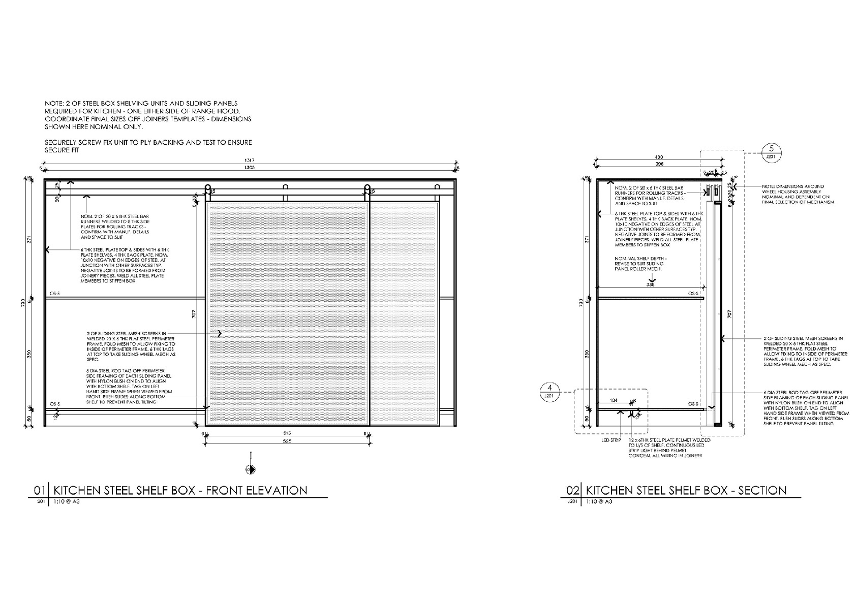 The project includes the use of mild steel plate for bench tops, shelving, cupboard fronts and door/window reveals. Recycled hardwood has been used in joinery fronts, wet area bench tops & vanities and wall cladding. Recycled red brick (with “frogs” out in some cases) provides a clear and obvious link to the most common material used in early Canberra building. Rooms are designed as flexible spaces – the study has a large steel and glass sliding door that can be used to open or close that space from the main living area. The client created and built a drop down dining table that acts as a light box when lifted to the ceiling and not in use giving the living area more space for larger gatherings.