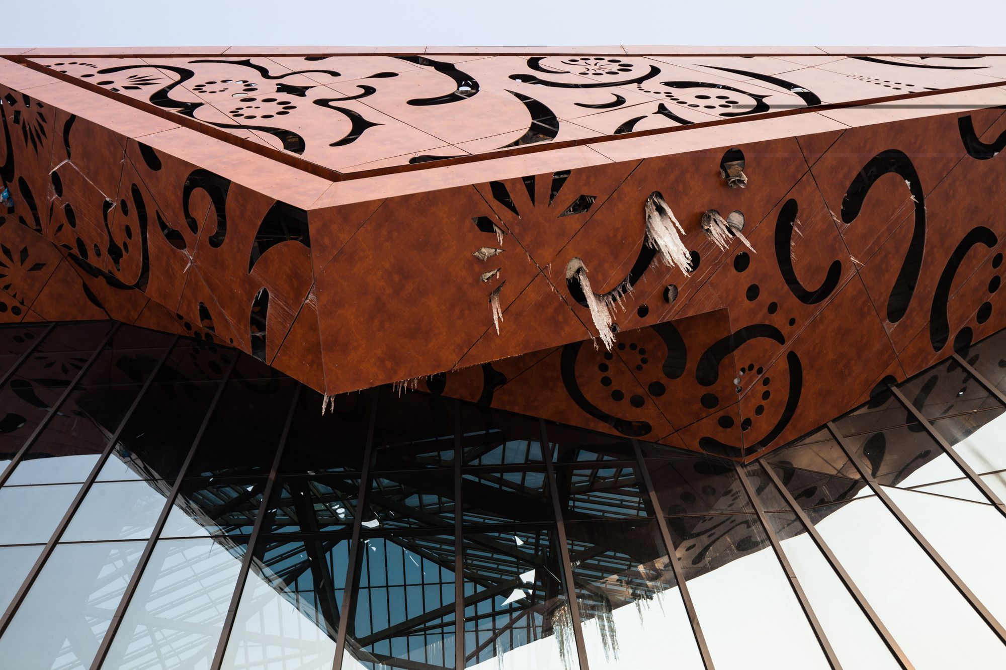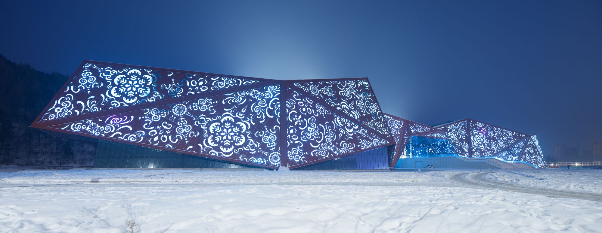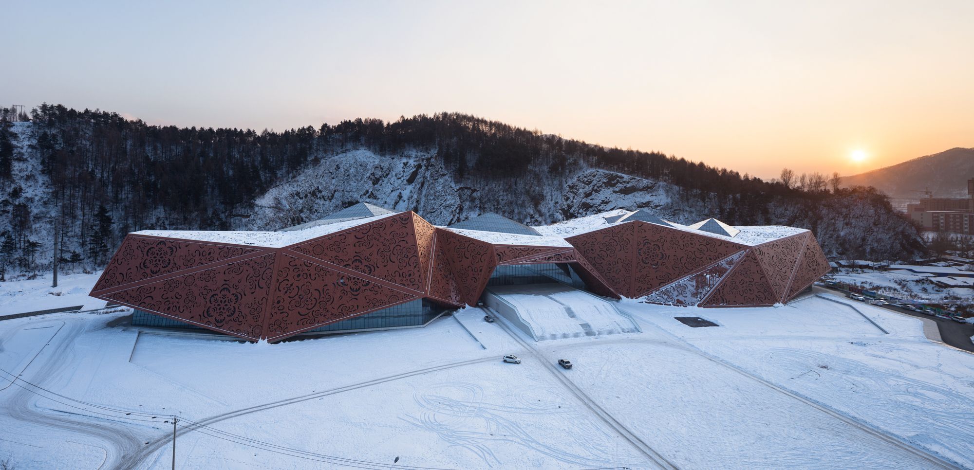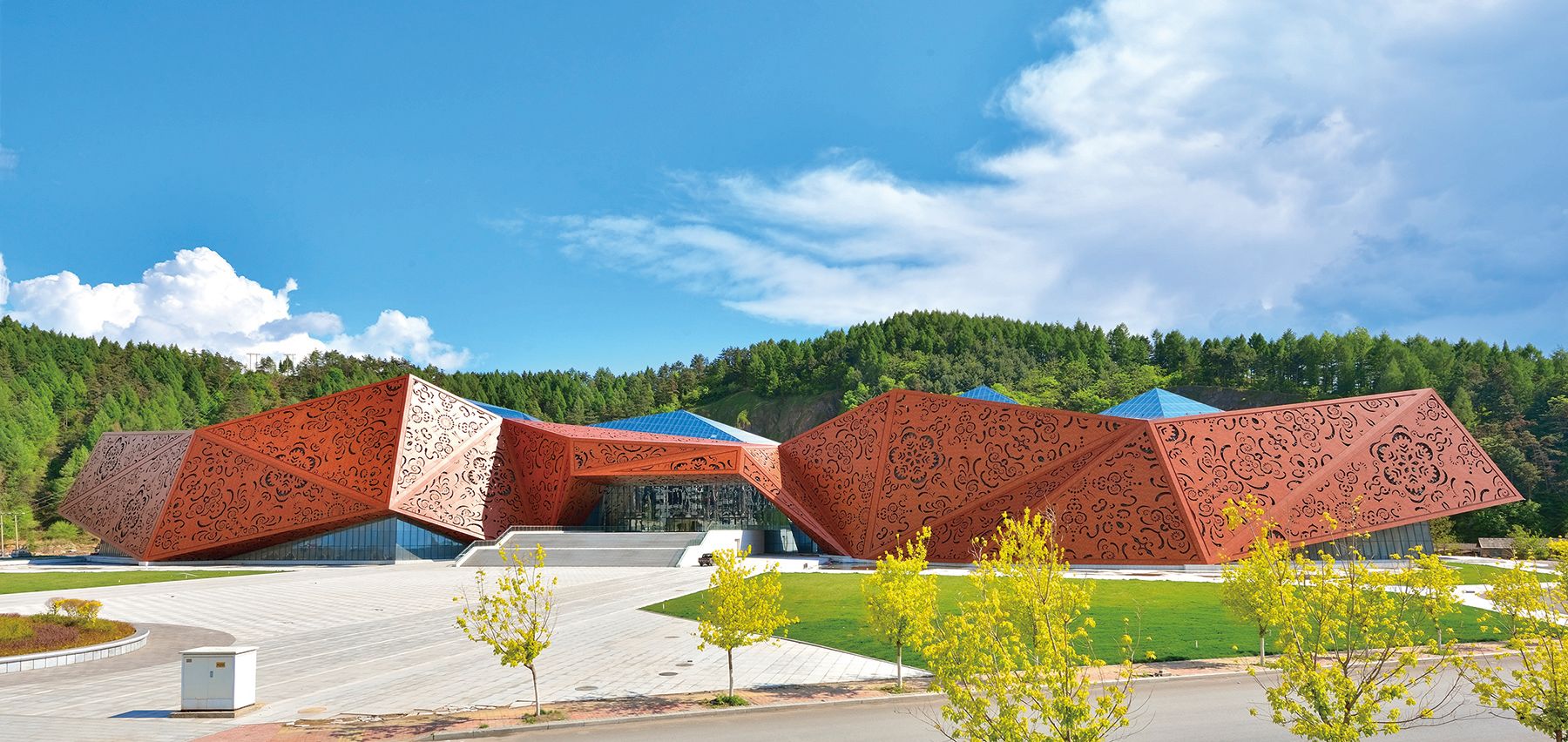 The interaction between “man and space” is also the emphasis of the design, presenting a visually enthusiastic interaction. Multi-zigzag building is complete and full of force, while the solid and virtual crystal shapes are just like the exploited jade. The metal facade featured by the cutting paper of the local Manchu in Tonghua affects every visitor with the synaesthesia and el Amor shadows.