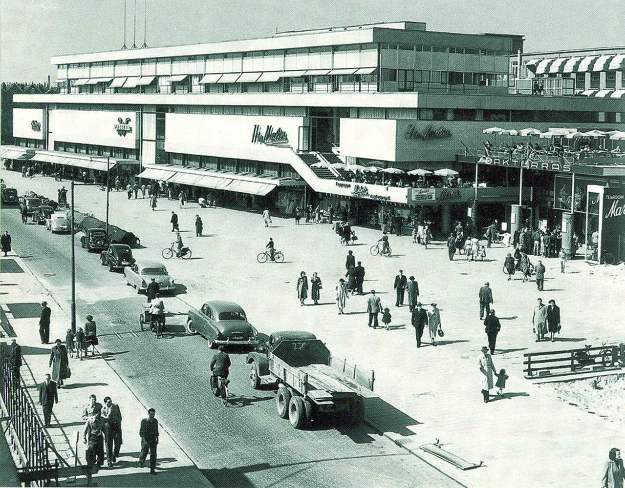 Rotterdam’s historic 1940s shopping center was renovated by Dutch firm Ibelings van Tilburg Architecten, who added a wood-and-steel mixed structure on top to house 114 residences. The studio’s addition, which stands atop the concrete columns and foundations of the original commercial center and raises it by 70 meters, saved it from collapse.