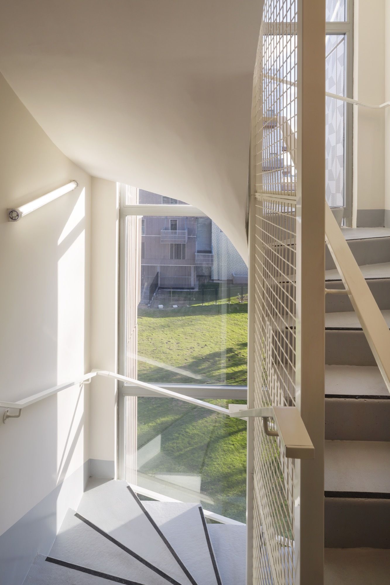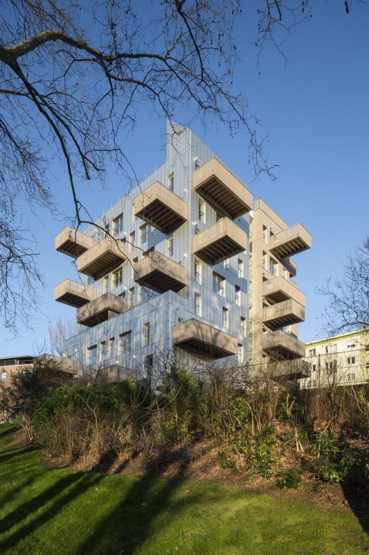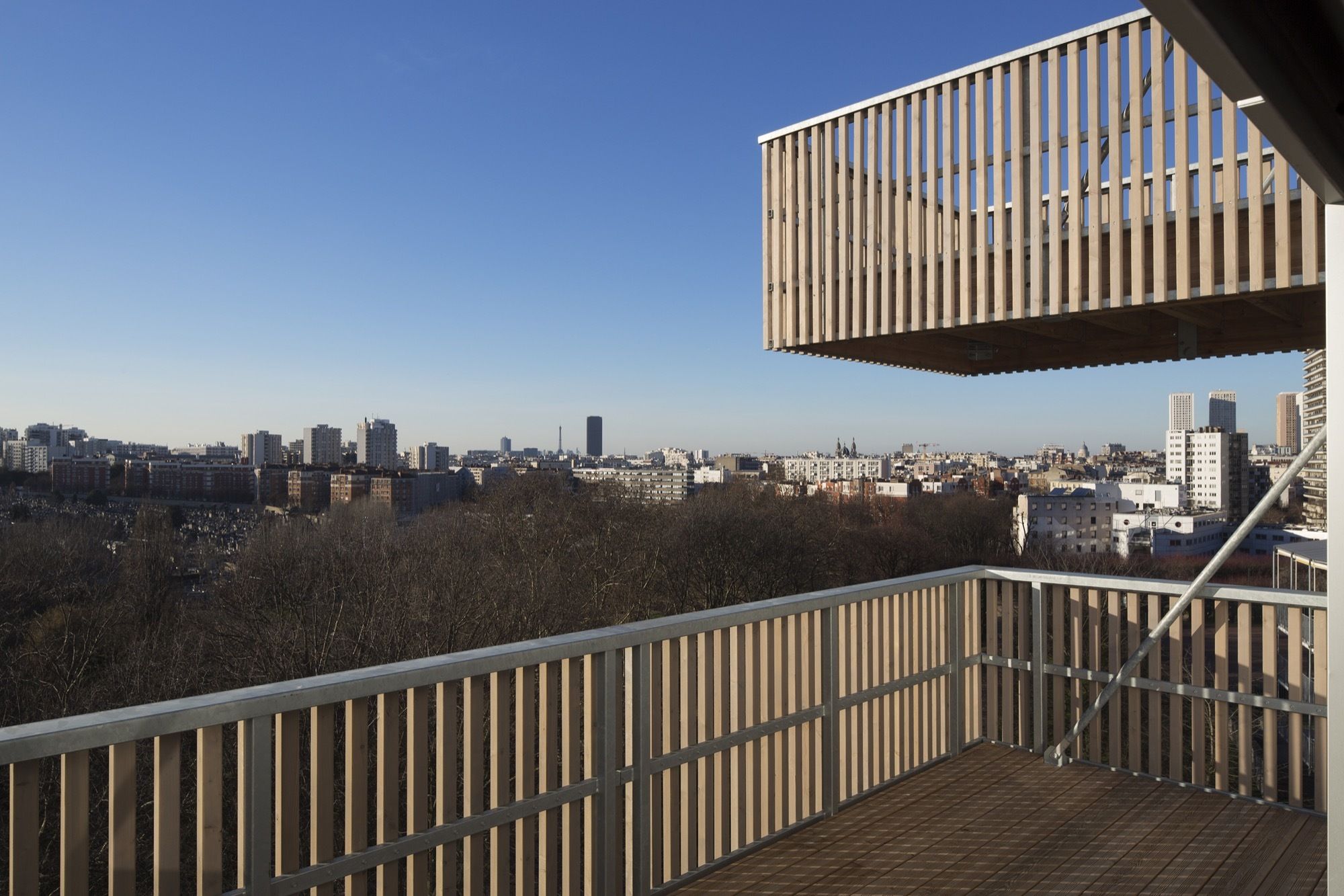 Most of the apartments enjoy this breathtaking metropolitan view, extending to spectacular balconies suspended in mid-air. They also benefit from features bringing extra comfort to everyday life that required cleverness and perseverance to fit inside the dense tower blocks required by the urban masterplan: living rooms are larger than asked by the client and true closed kitchens, large landings offering sunlight and views to the outside, and real wood flooring in all apartments. Because social housing is not « all in the façade » architecture !