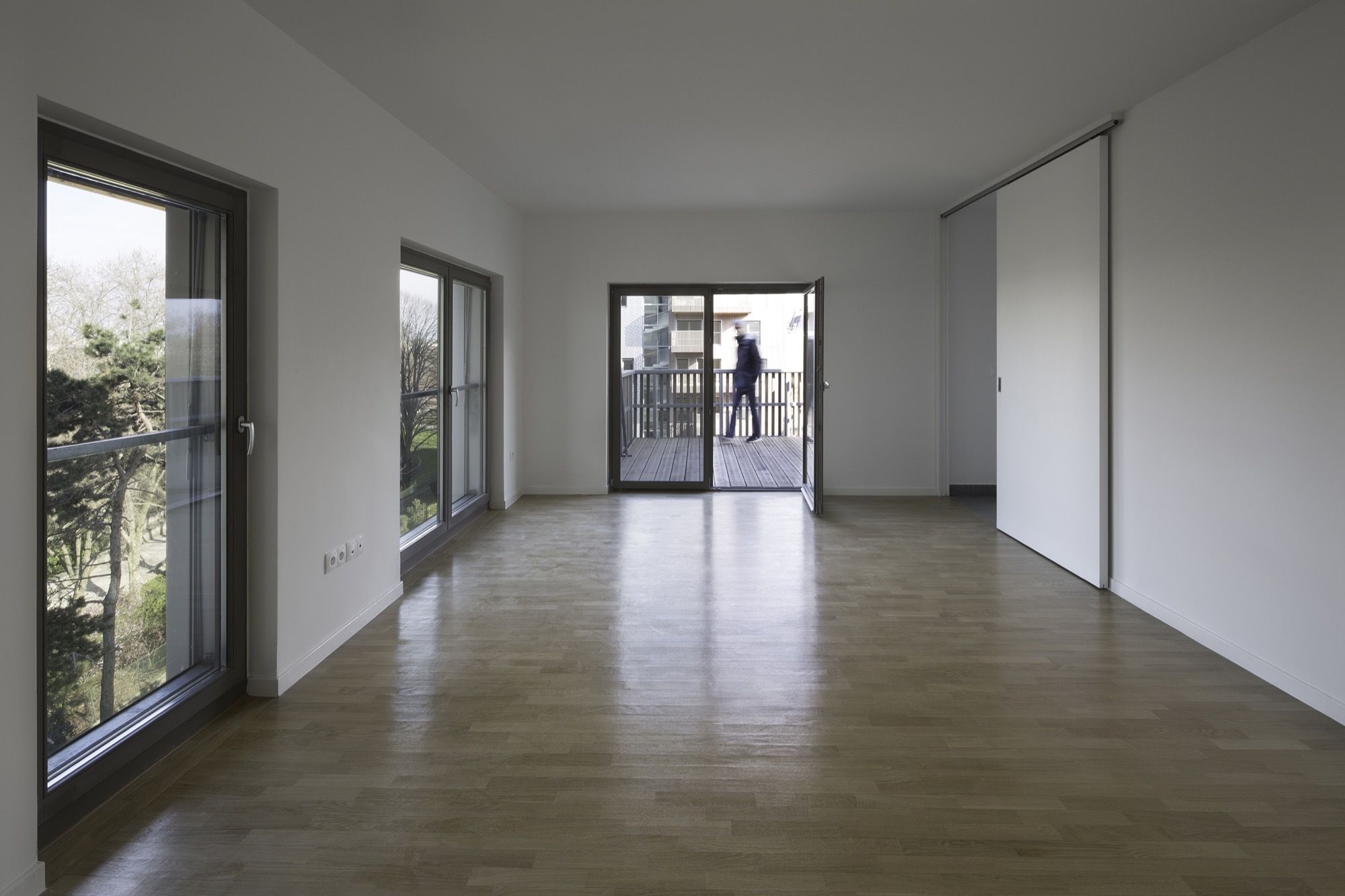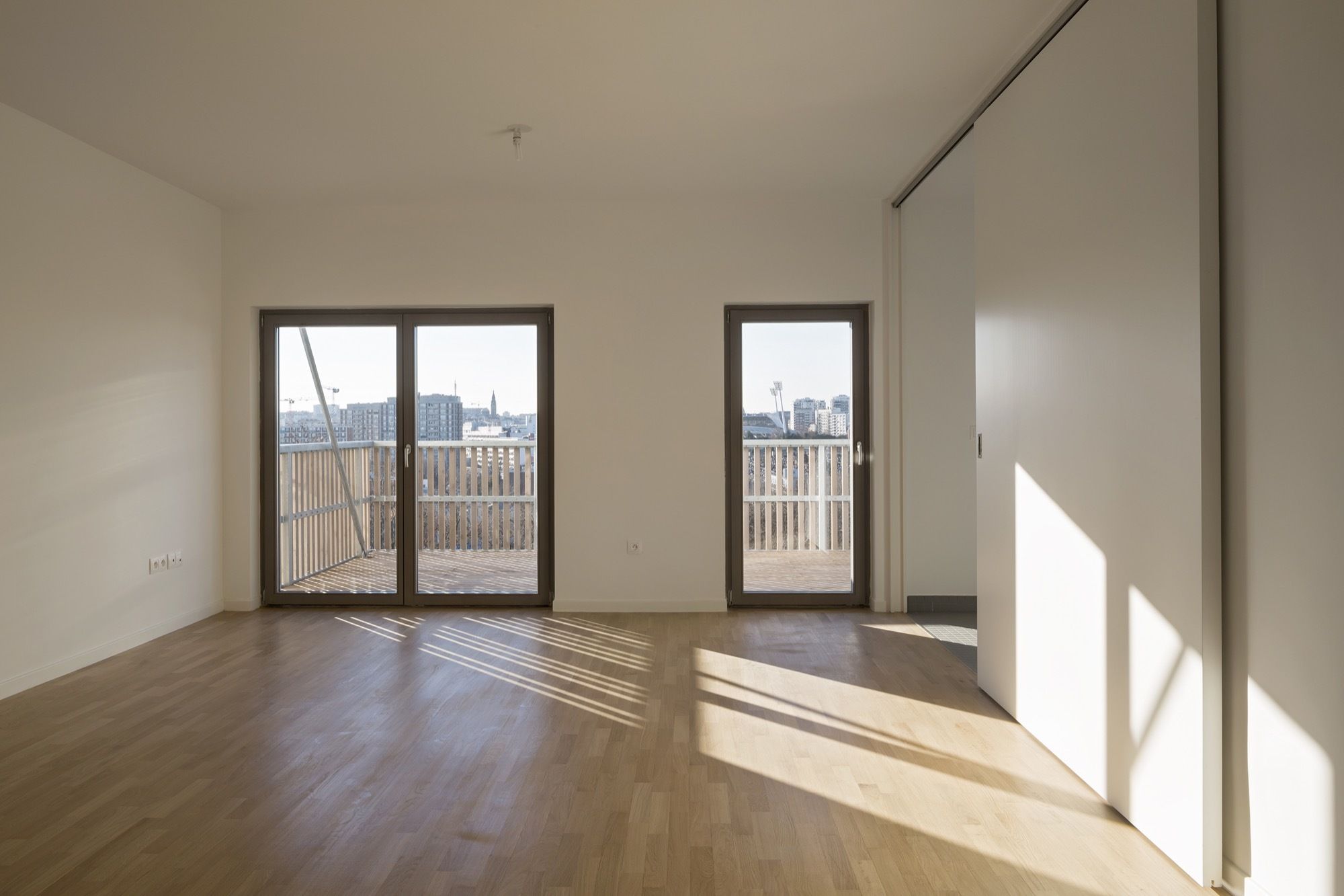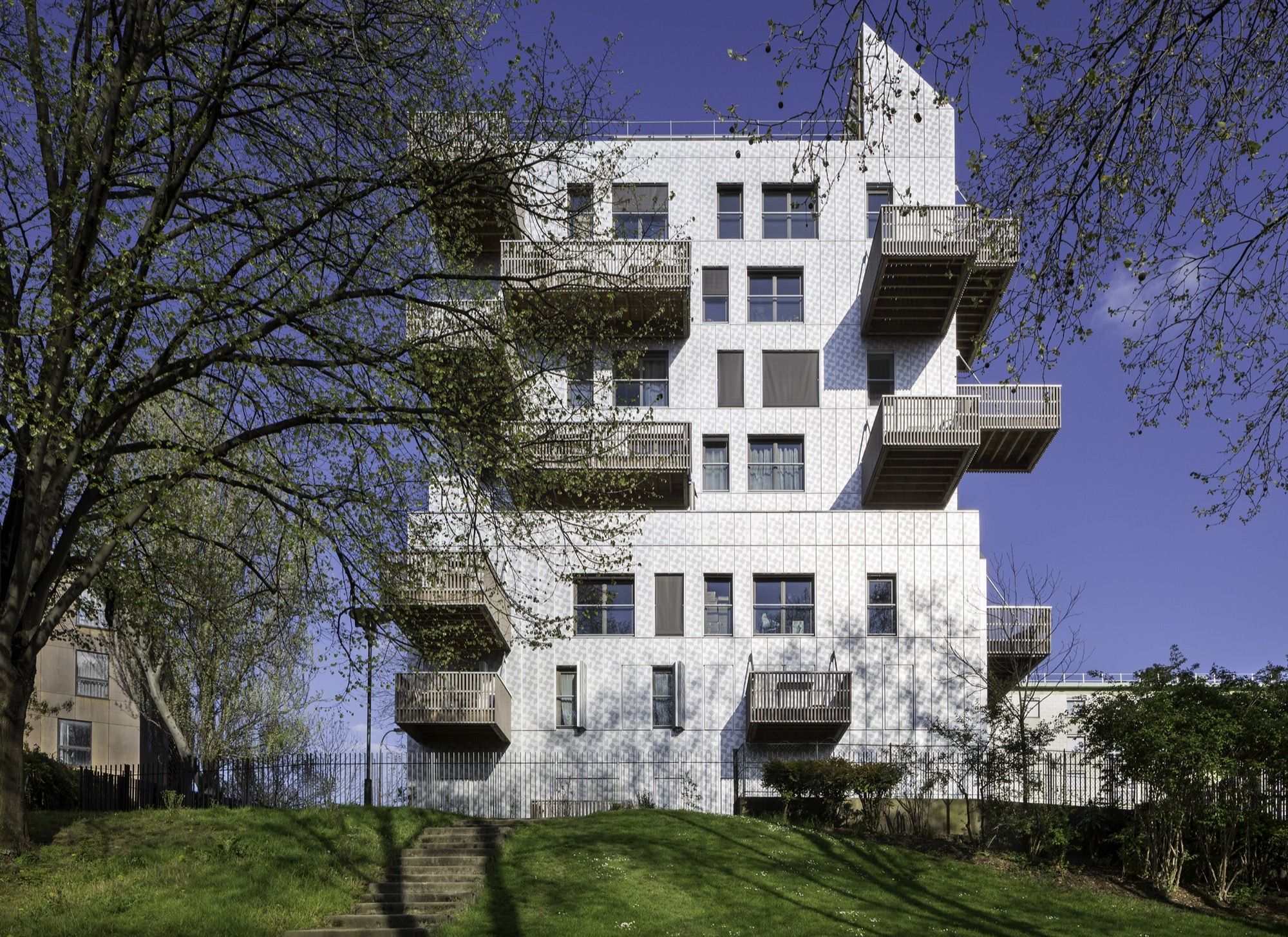 Most of the apartments enjoy this breathtaking metropolitan view, extending to spectacular balconies suspended in mid-air. They also benefit from features bringing extra comfort to everyday life that required cleverness and perseverance to fit inside the dense tower blocks required by the urban masterplan: living rooms are larger than asked by the client and true closed kitchens, large landings offering sunlight and views to the outside, and real wood flooring in all apartments. Because social housing is not « all in the façade » architecture !