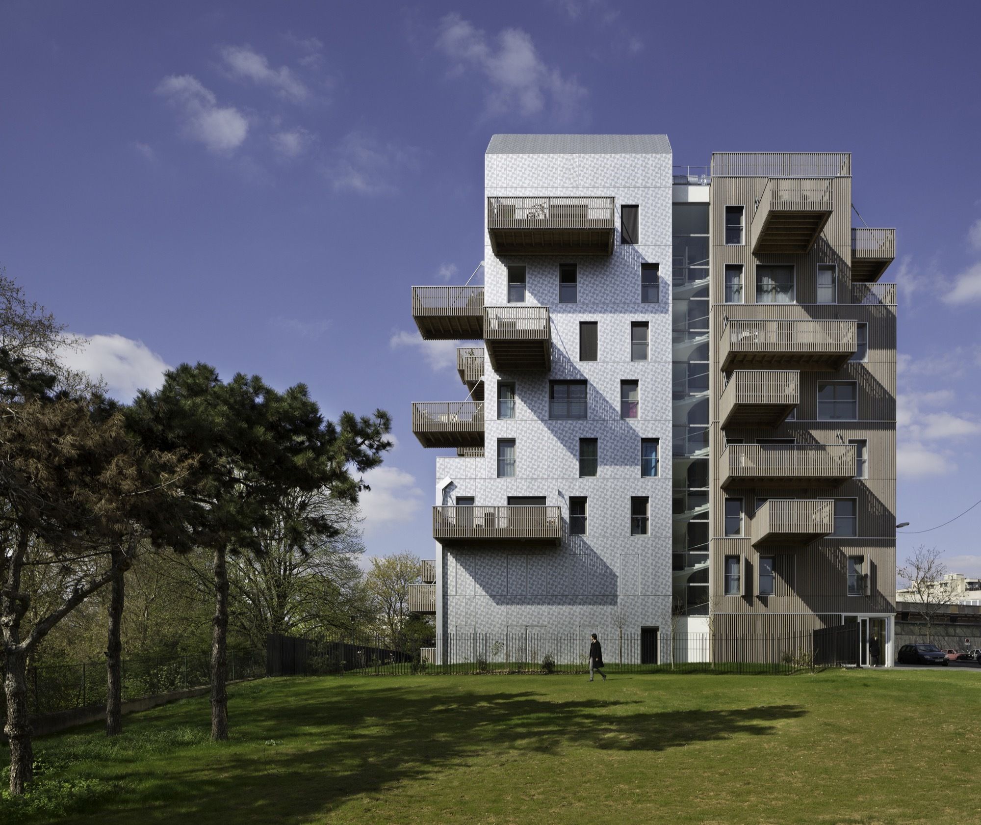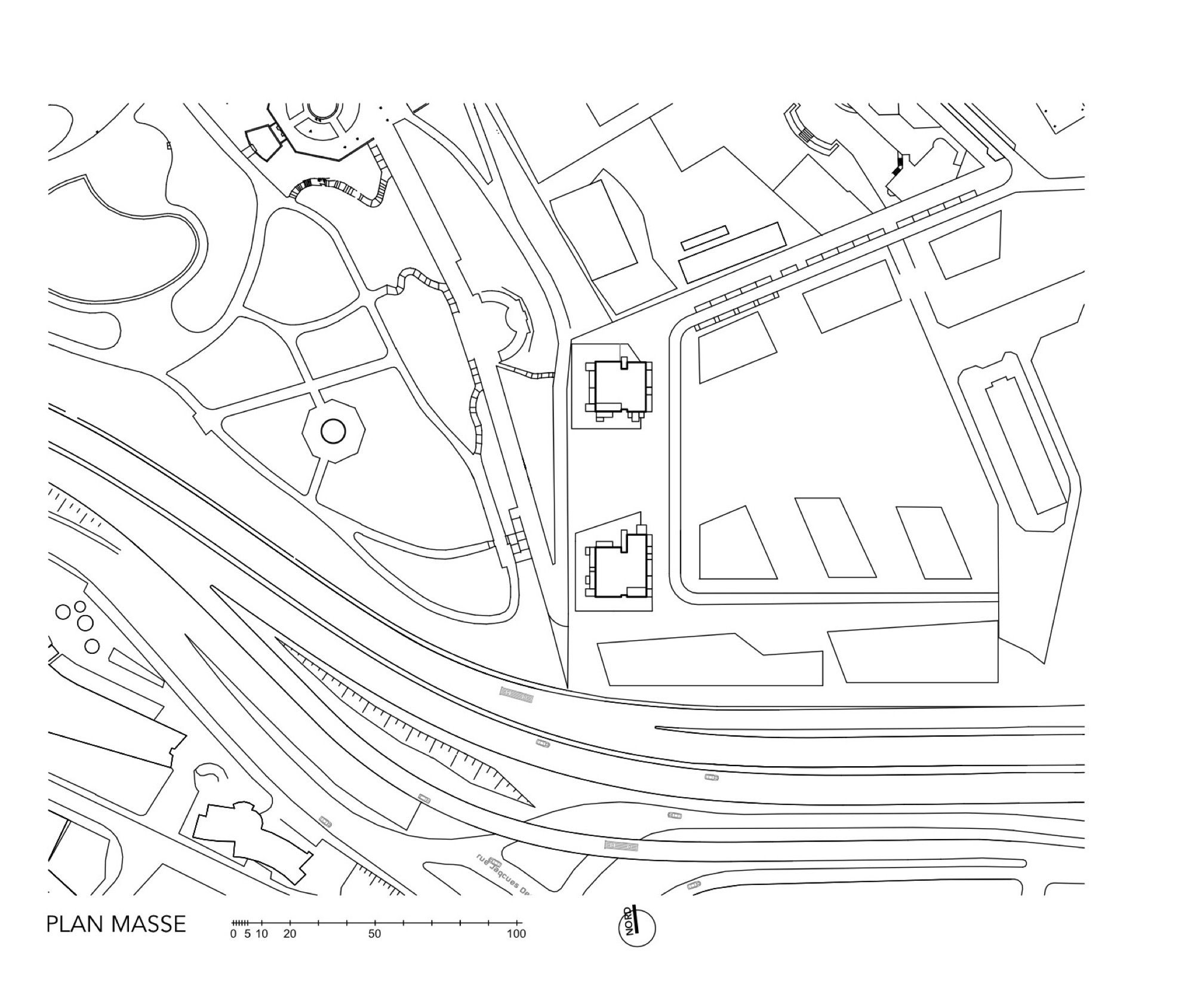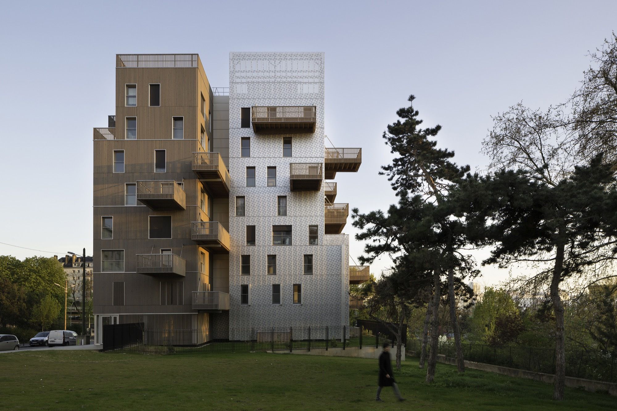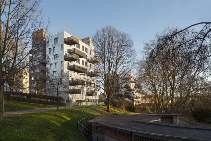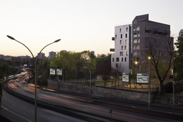 Looking like two gentle urban « Totoro » figures, the project stands on the site of a previous building scrapped down after it caught fire. It sets the mood for the gradual uplifting of the whole area around a central garden opening on the beautiful western horizon ranging above the Kellerman Park towards the Charlety stadium.