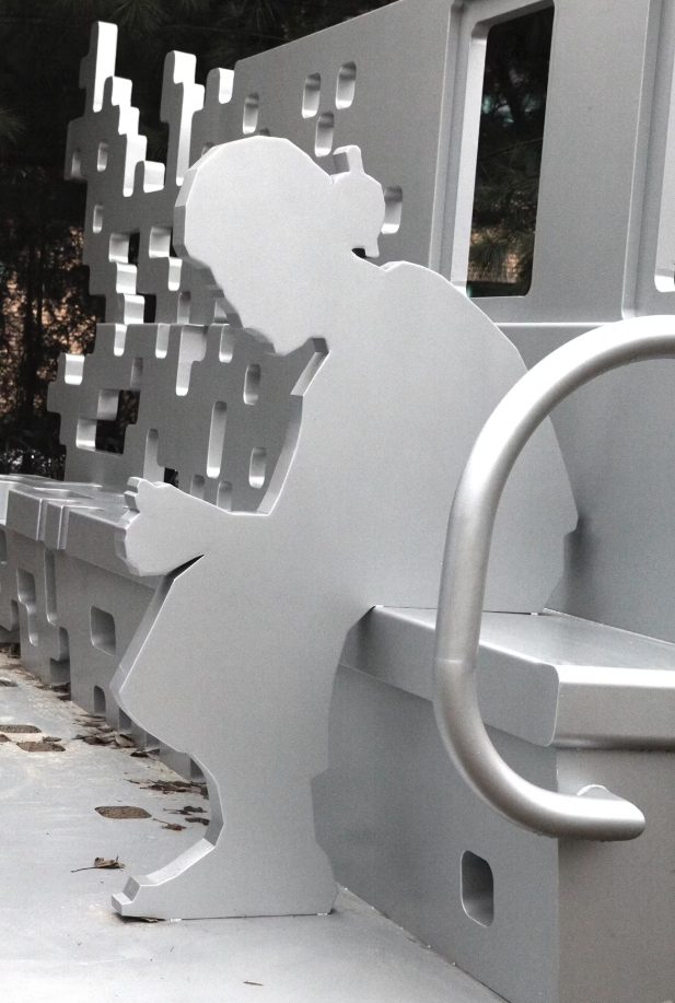 “Standing passengers had experienced a hard time from shaking. The facing seats were so close that they barely let one person walk through” explains Yong. The stainless-steel woman’s silhouette placed within the train adds emphasis to the narrowness of the space; it also adds character and allows visitors to connect with the art piece and its historic reference. This project connects the new generation to memories of the old city; it strengthens their sense of belonging and their understanding of important historic city transportation lines.