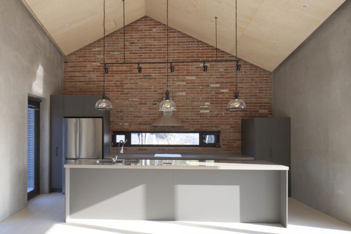 Design of the house started with the son instead of the old couple. Since it is a vacation house, easy maintenance and reasonable construction cost are crucial. I wanted to be a house where the family would build one by one instead of completed at once. Therefore, the design evolved to use relatively simple forms and durable materials. The space of the old couple and the kitchen/living room arranged on the ground floor, and space for the son and daughter planned on the second floor. I tried to make it experience various views and flow of gaze through the simple circulation. On the morphological side, it transformed into a floating box shape from a traditional gable roof. It is a result that shifted upper floor space gradually falls to kitchen space.