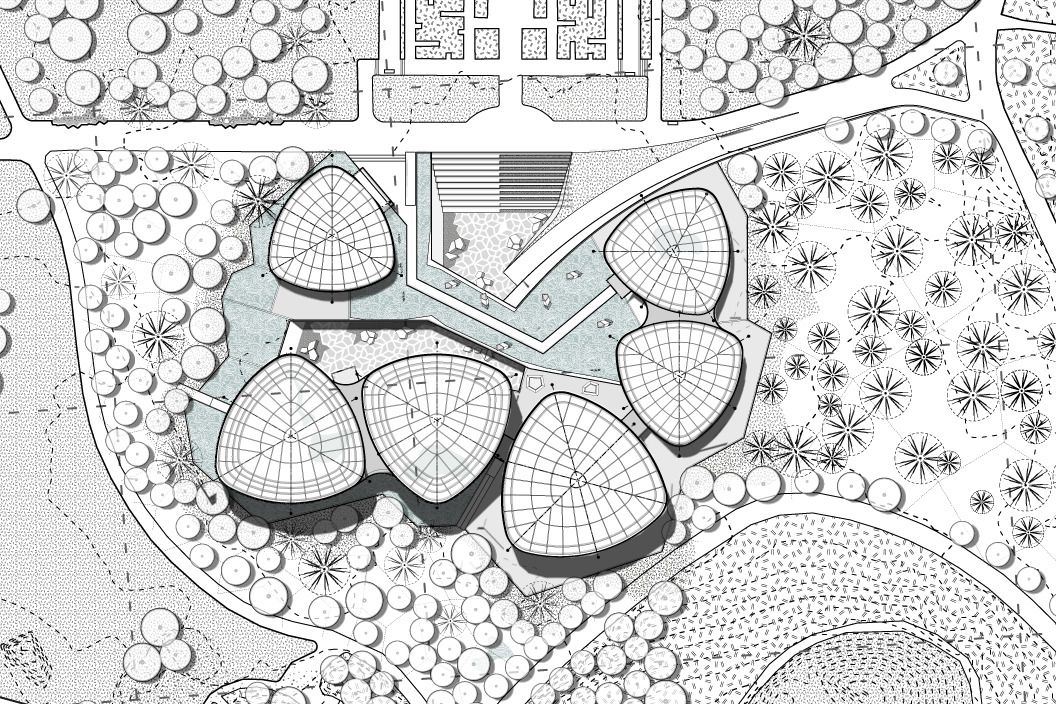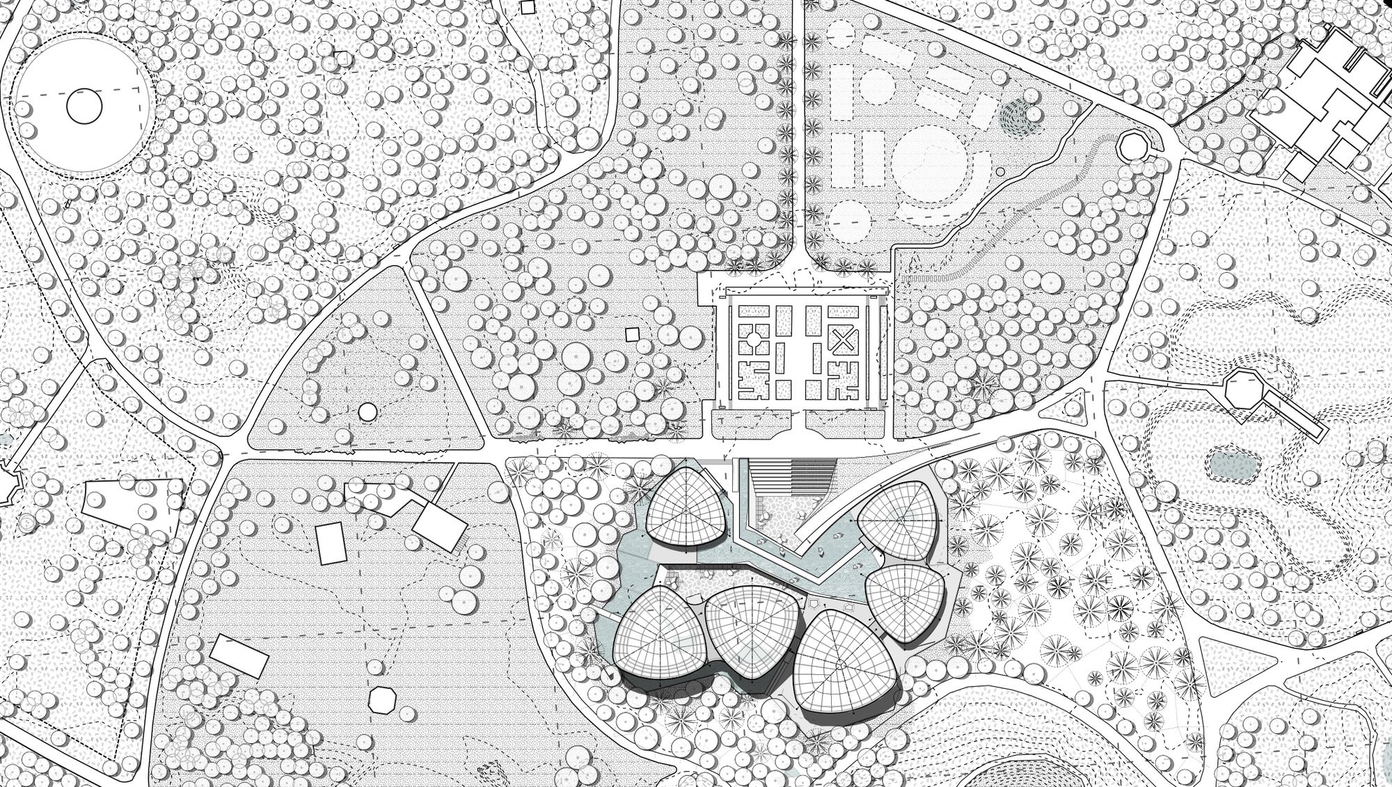 The use of passive temperature control systems that do not require mechanical ventilation systems, such as glass with variable thicknesses and filters, and automated systems for opening select regions to manage the temperature was advocated. Each structure is thought of as a water receiver, with an oculus incorporated in the upper part to capture rainwater and lead it to lakes located within the space, then to the artificial wetland in the perimeter, which acts as an extensive reservoir of water used for irrigation systems for vegetation, creating a closed cycle. A system of “locks” as transitional spaces between the various collections allows the visitor to travel from one place to another while maintaining the temperature conditions necessary for each. Each lock is equipped with the required technological controls and emergency exits. The environmental emergency that our world is facing necessitates the creation of a public project that combines urban and environmental logic in a symbiotic manner to protect our shared natural heritage.