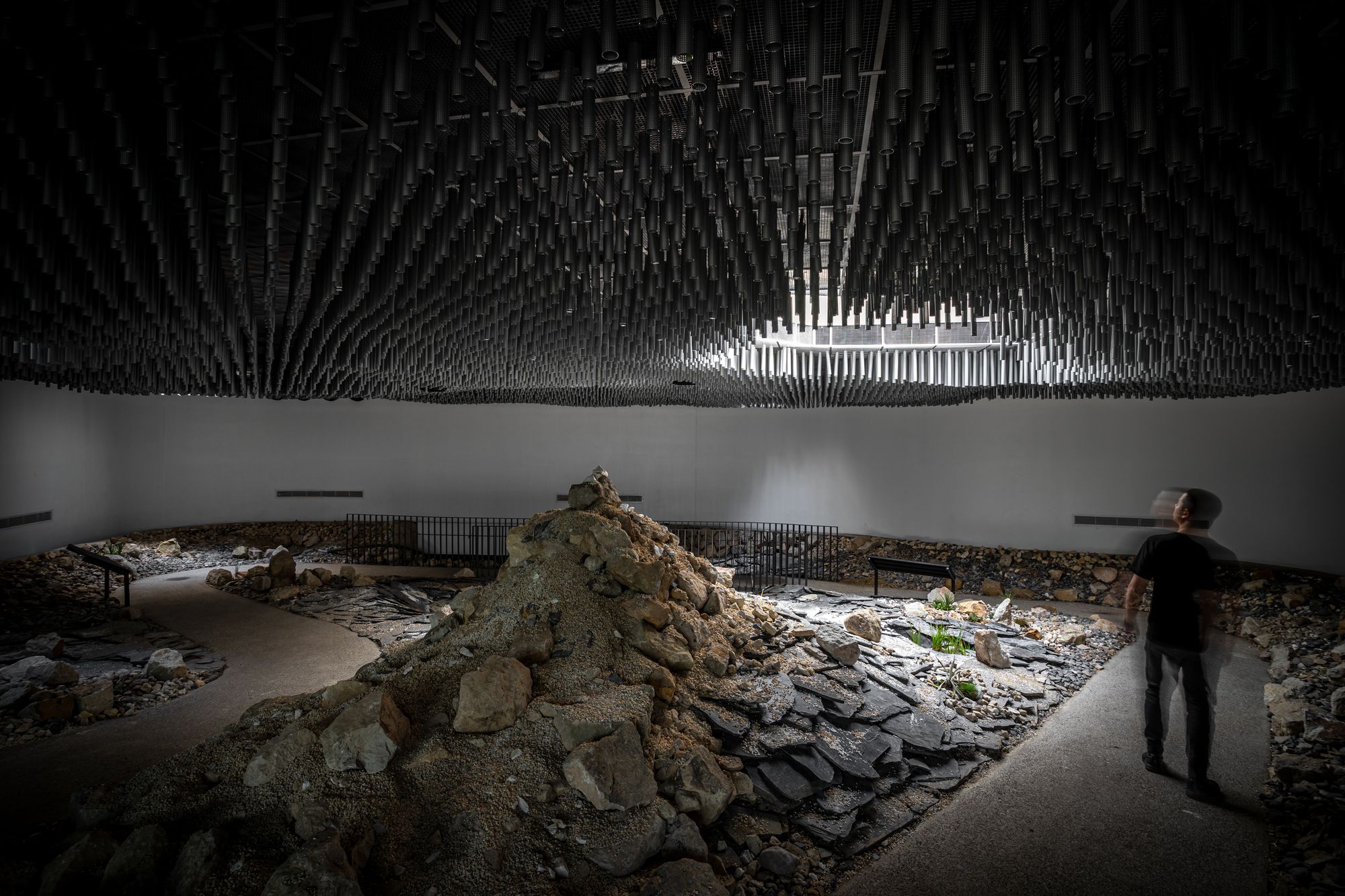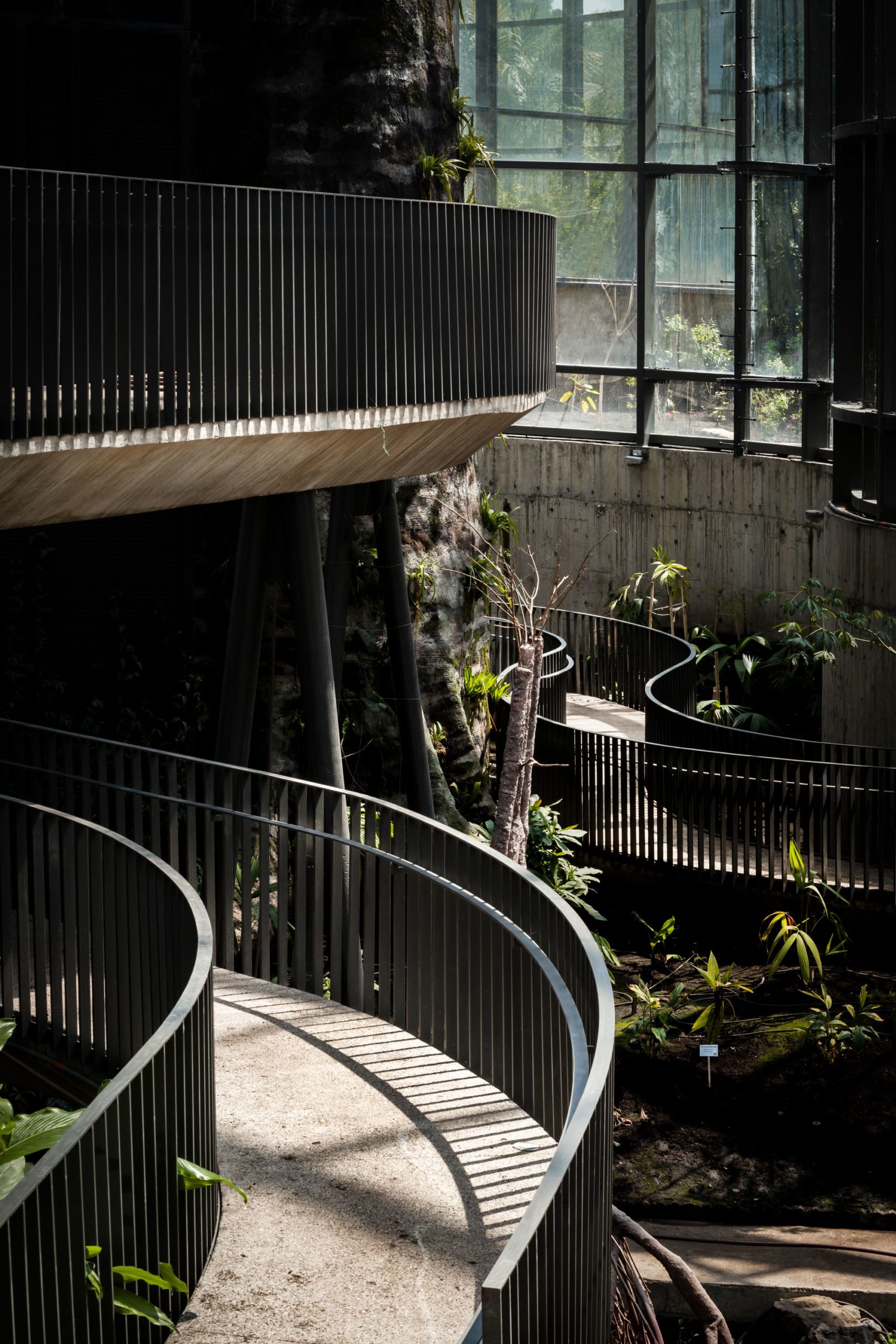 El Tropicario is a dedication to creating a landscape culture in which a message of global importance is communicated through the local setting. The structural system was built around concrete pillars that were driven 30 meters into the ground and placed around the perimeter of the buildings. The goal of this method was to loosen the soil within the gaps to create places for deep sowing. The concrete sloping walls of these pillars were emptied upon reaching the surface, serving as a support for the metal structure, allowing it to serve as “flowerpots” inside the spaces, where part of the earth can be contained for plants and to generate changes in the topography that allow organizing the planting areas of the various species. 30 cm x 10 cm metal pillars are mounted on the reinforced concrete walls around each area, producing “structural baskets” as a self-supporting framework that allows for no columns within.