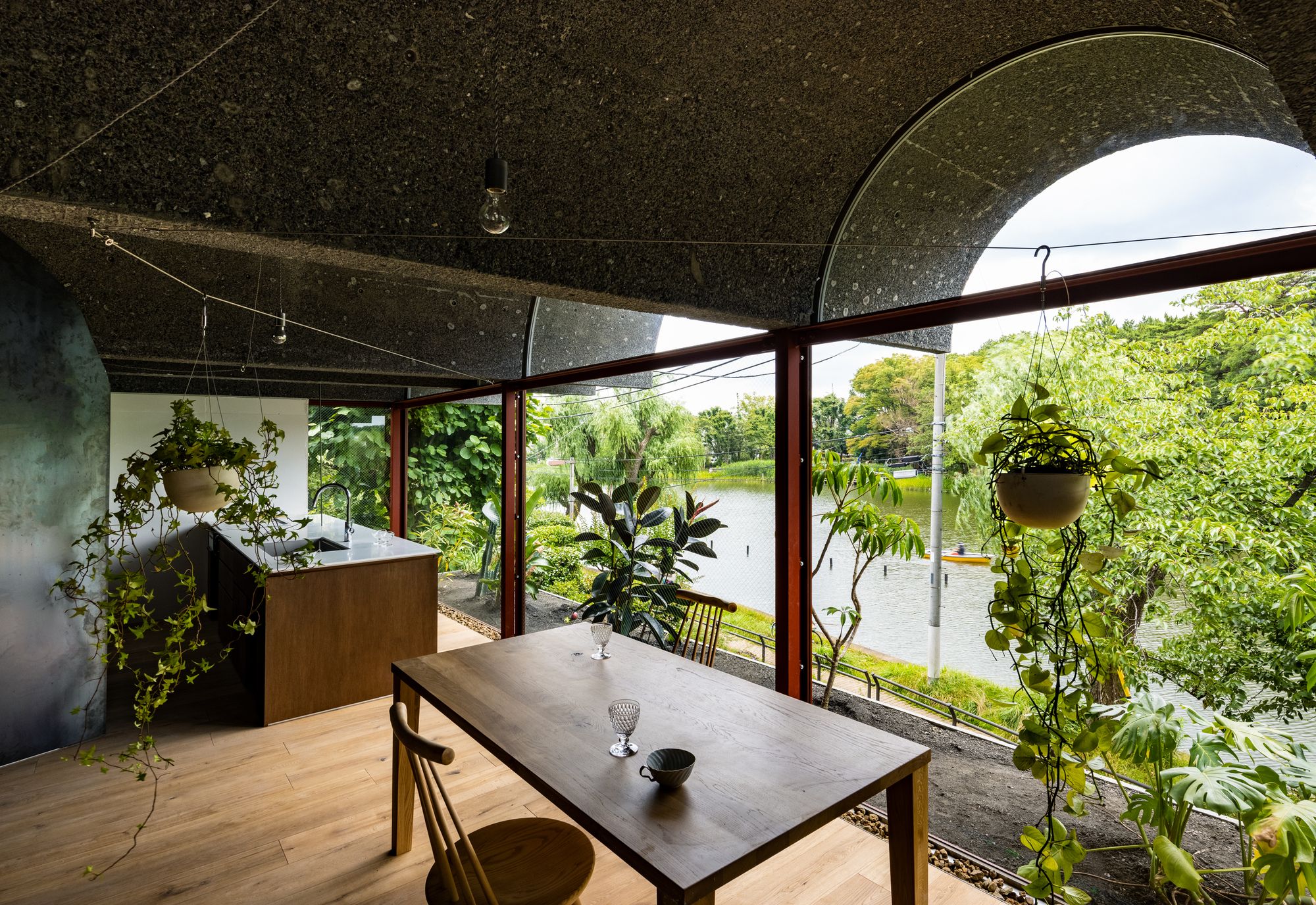 The slab fabricates a 3,500mm open high ceiling at the top, and at the valley, the height lowers to 2,000mm, reachable by hand. If the structure is reachable, eye bolts, ring nuts, and wires could be attached to plastic end cones, and it will allow us to hung hammocks, pendant lights, planters at the desired location. Reachable structures might be able to generate creativity in one’s daily life. It would be the structure to support not only the environment but also the one’s living.