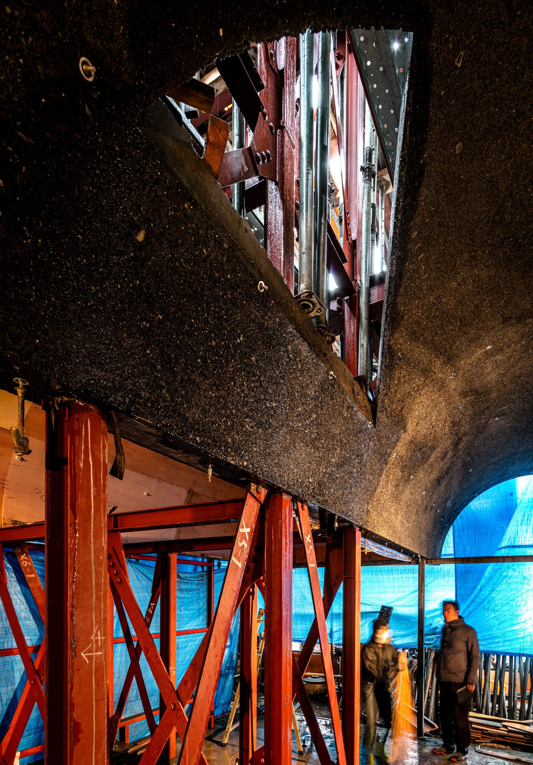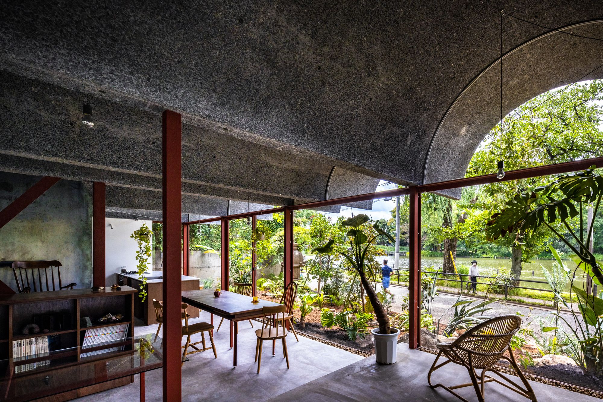 In fact, it was not easy to hold up the natural environment. Unlike static artefacts, the natural environment cannot be controlled. The compost itself is already heavy. On top of that, there are weights of torrential rains, growing and increasing plants every year that need to be considered. When unpredictable and unstable organisms and climates became requirements for architectural design, the more the design progressed, the scarier it was to embrace the environment.