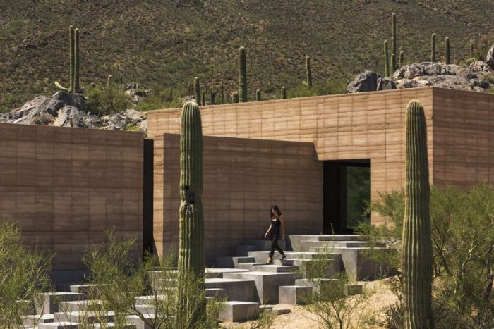 Designed by DUST, Tucson Mountain Retreat is located within the Sonoran Desert; an extremely lush, exposed, arid expanse of land that emits a sense of stillness and permanency, and holds mysteries of magical proportions. The home is carefully sited in response to the adjacent arroyos, rock out-croppings, ancient cacti, animal migration paths, air movement, sun exposure and views. Great effort was invested to minimize the physical impact of the home in such a fragile environment, while at the same time attempting to create a place that would serve as a backdrop to life and strengthen the sacred connections to the awe-inspiring mystical landscape.